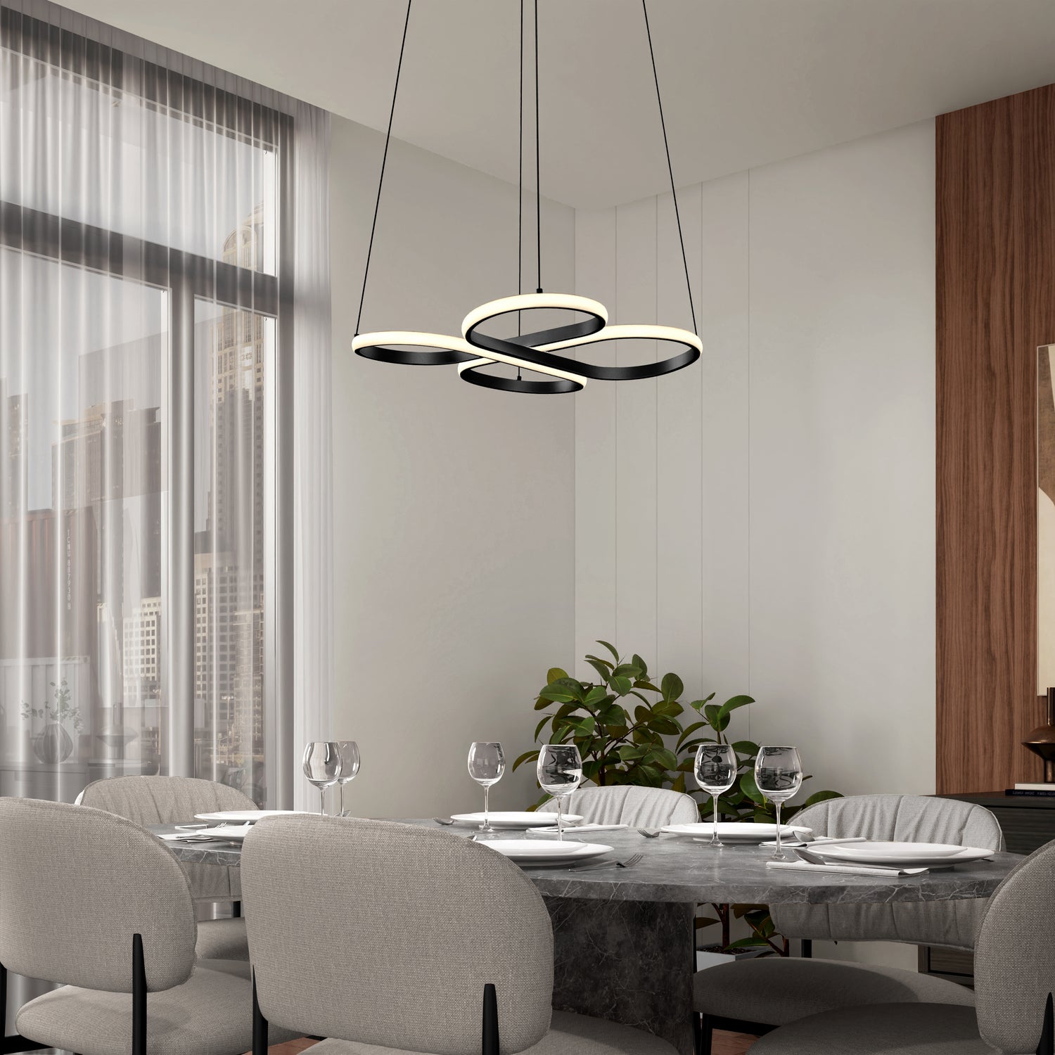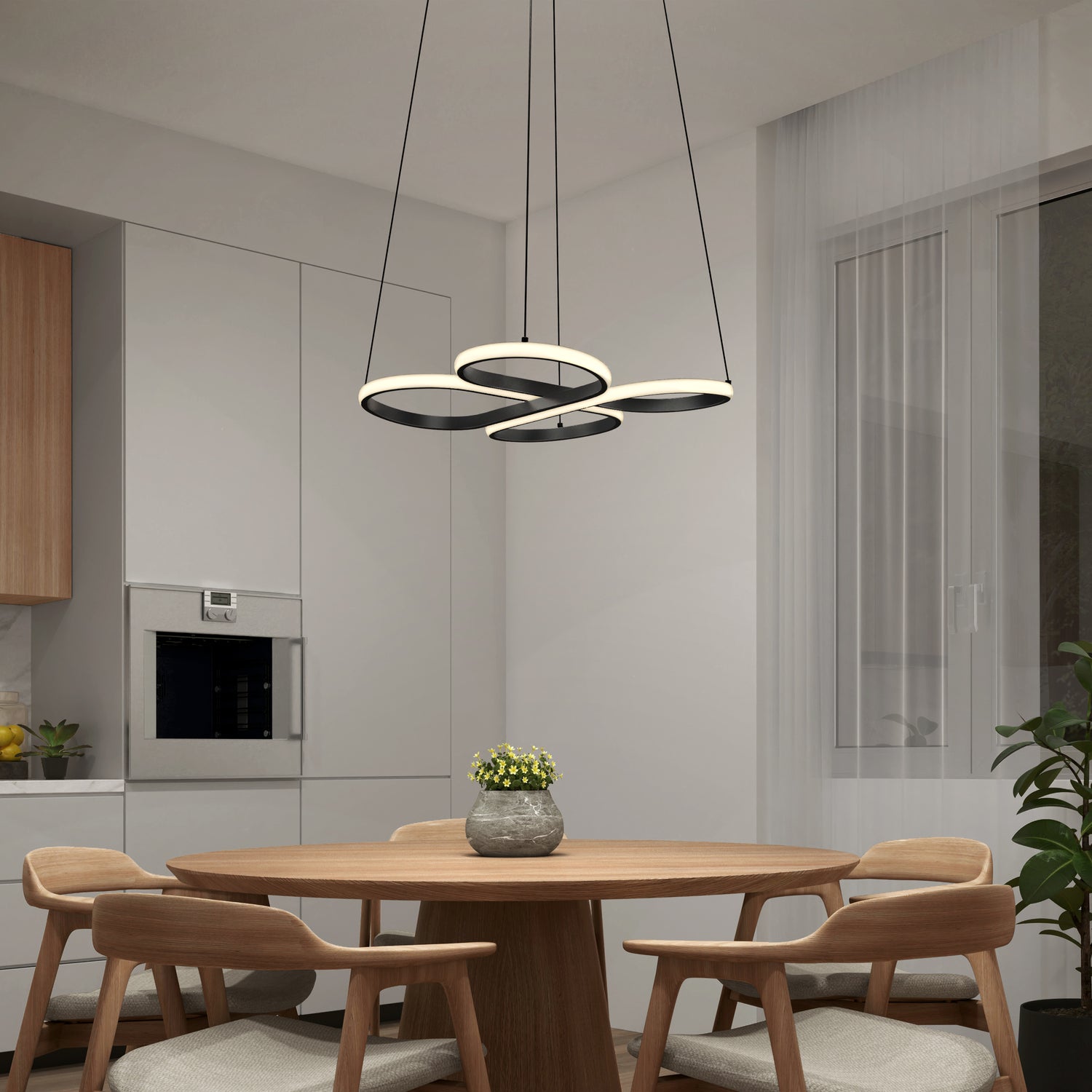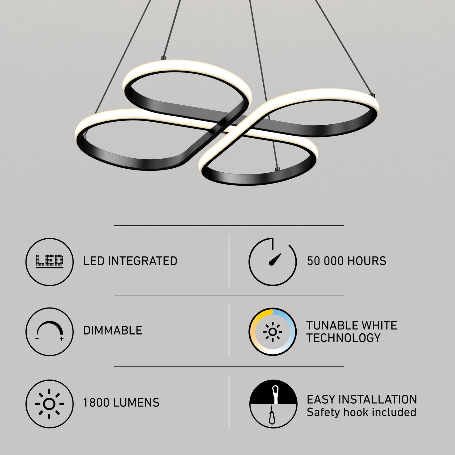 La suerte le sonreirá gracias a esta lámpara colgante con luz led integrada cuya forma recuerda un trébol de 4 hojas minimalista. Está formada por una fina banda iluminada entrelazada que atrae las miradas por su ligereza. Es perfecta para las entradas y los comedores pequeños o medianos.