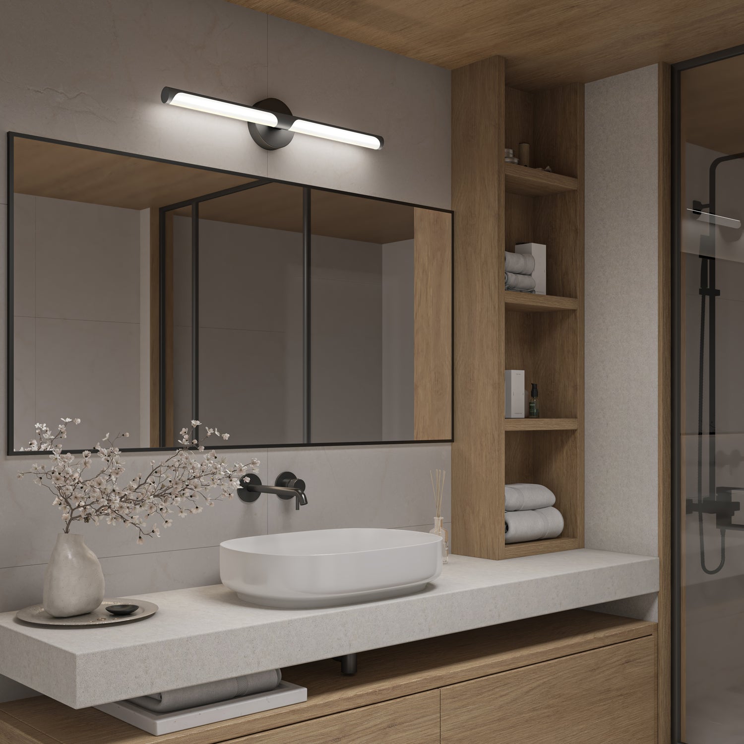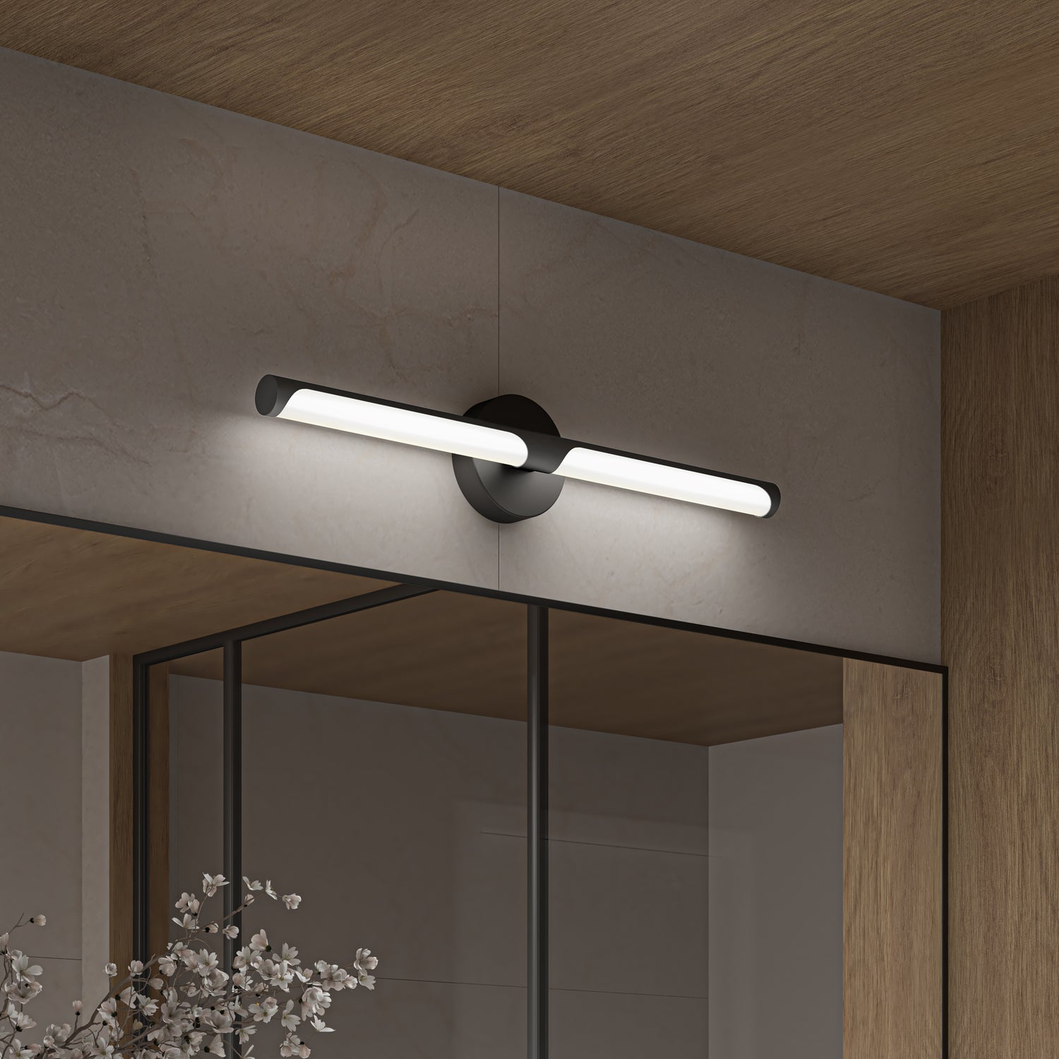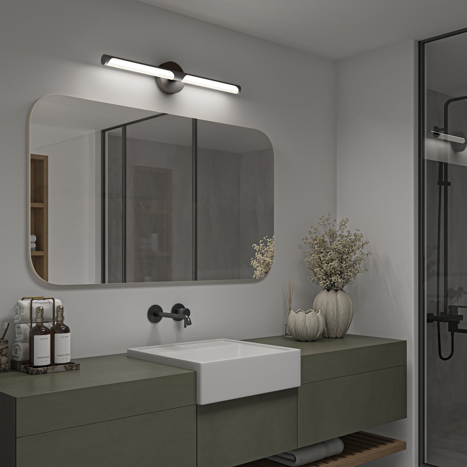 Este aplique de pared con luz led Ilona integrada de forma tubular es el aliado perfecto a la hora de arreglarse. Cuando se instala encima del espejo del baño emite una potente iluminación muy favorecedora. Sus 1300 lúmenes brindan la luminosidad que necesita para ver bien. Puede acoplar el aplique a un regulador de luz led compatible para obtener una iluminación de ambiente relajante para un baño de espuma. Colores de luz ajustables. Vida útil: 50 000 horas.