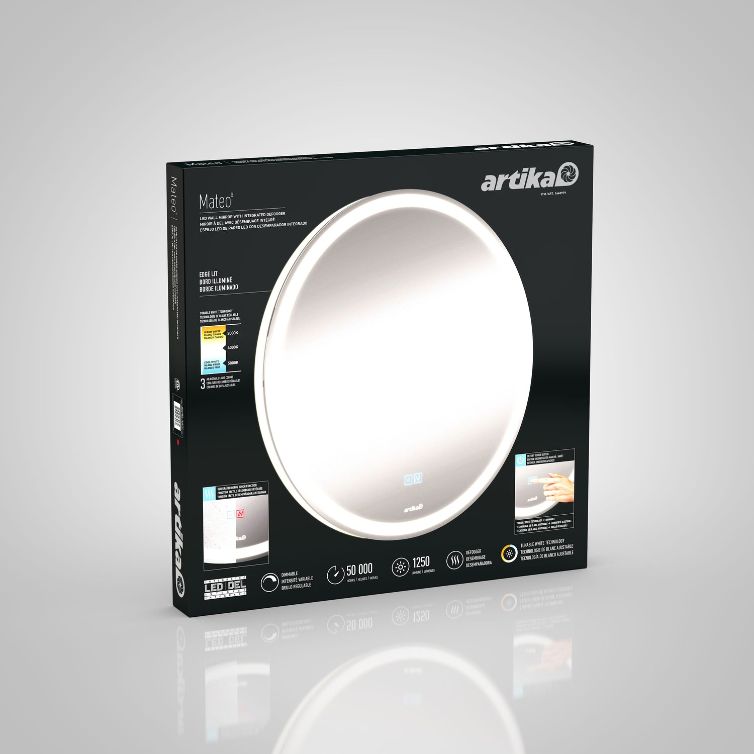 Con los botones de control táctil puede encender y apagar la luz del espejo a su gusto, activar la función antiempañante y controlar la intensidad de la luz. Este espejo de 1250 lúmenes se conecta como una lámpara y ofrece una selección de 3 tonos de luz blanca. Vida útil: 50 000 horas.