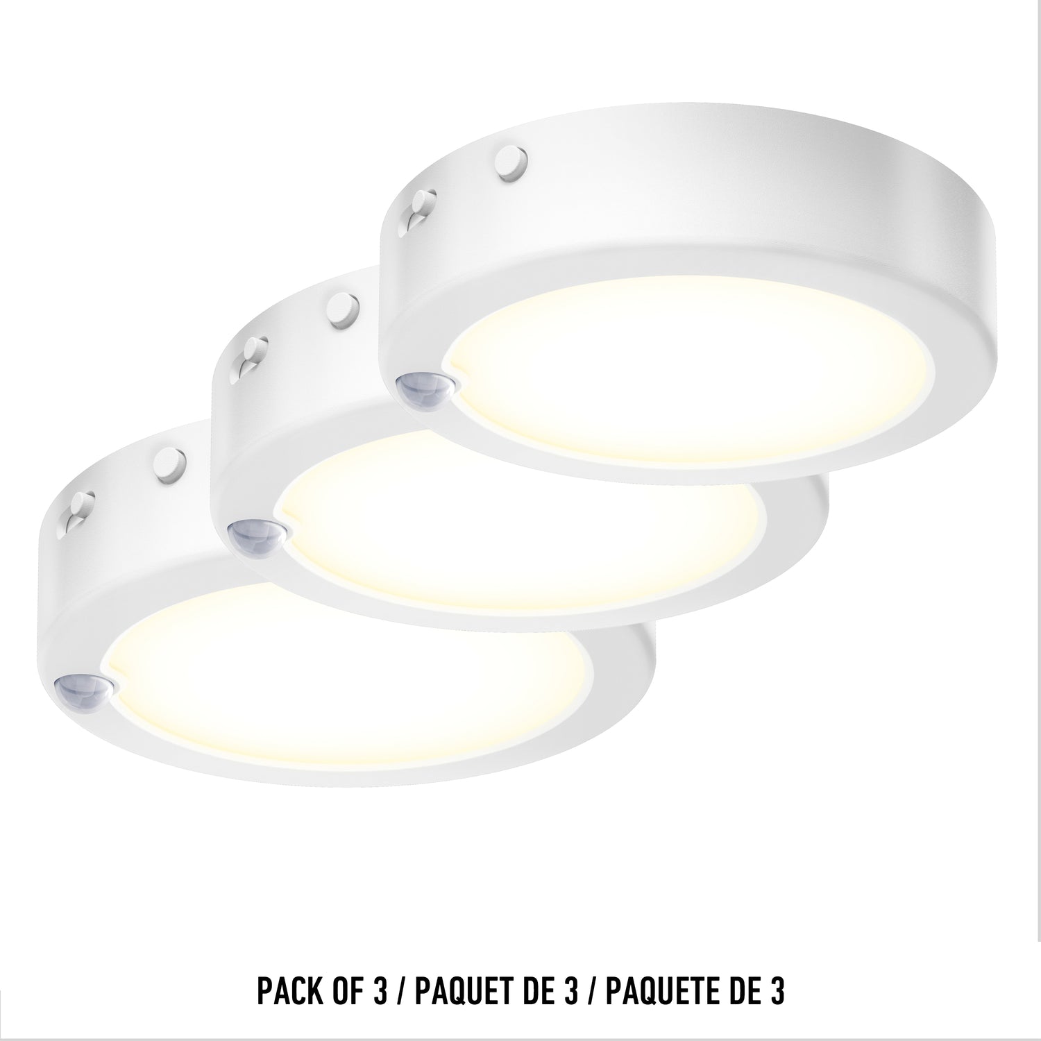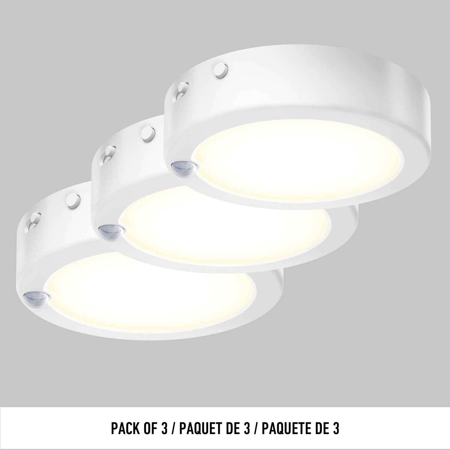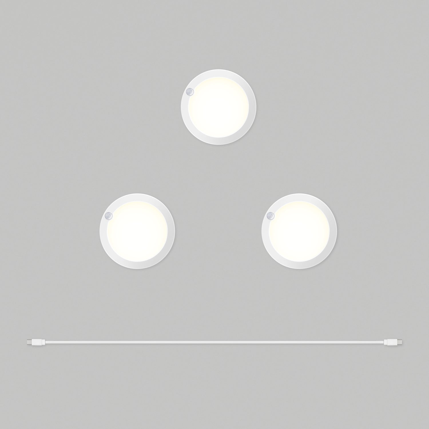 This set of three LED closet lights provides a practical and elegant lighting solution for walk-in closets. Install them above rods or dressers to create a stylish mini showroom.