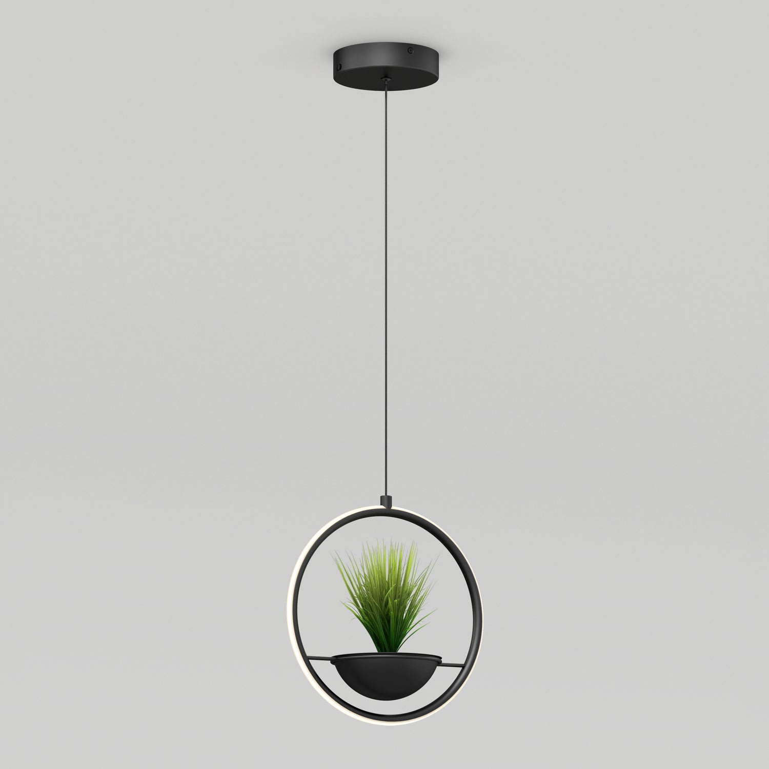 This distinctive LED pendant captivates with a faux plant suspended within its luminous ring. You can also customize the light by substituting its centrepiece with live greenery. It's a modern eco accent that elevates any room. Emitting 650 lumens, this pendant invites you to adjust its intensity and set the mood with an LED-compatible dimmer. In addition, it includes adjustable white balance technology with five shades ranging from warm to cool. Lifespan: 50,000 hours. Here are some plant species that may be planted in the Colin pendant light. They don't need frequent watering and can thrive without drainage: Snake Plant (Sansevieria) ZZ Plant (Zamioculcas zamiifolia) Aloe Vera Jade Plant (Crassula ovata) Pothos (Epipremnum aureum) Cast Iron Plant (Aspidistra elatior) Spider Plant (Chlorophytum comosum) Cacti (Various species) Succulents (Various species) Ponytail Palm (Beaucarnea recurvata) The planter measures 5.5" in width and 2" in height, making it perfect for smaller plants and plant clippings!