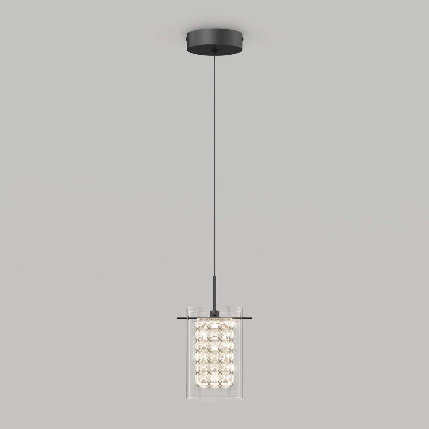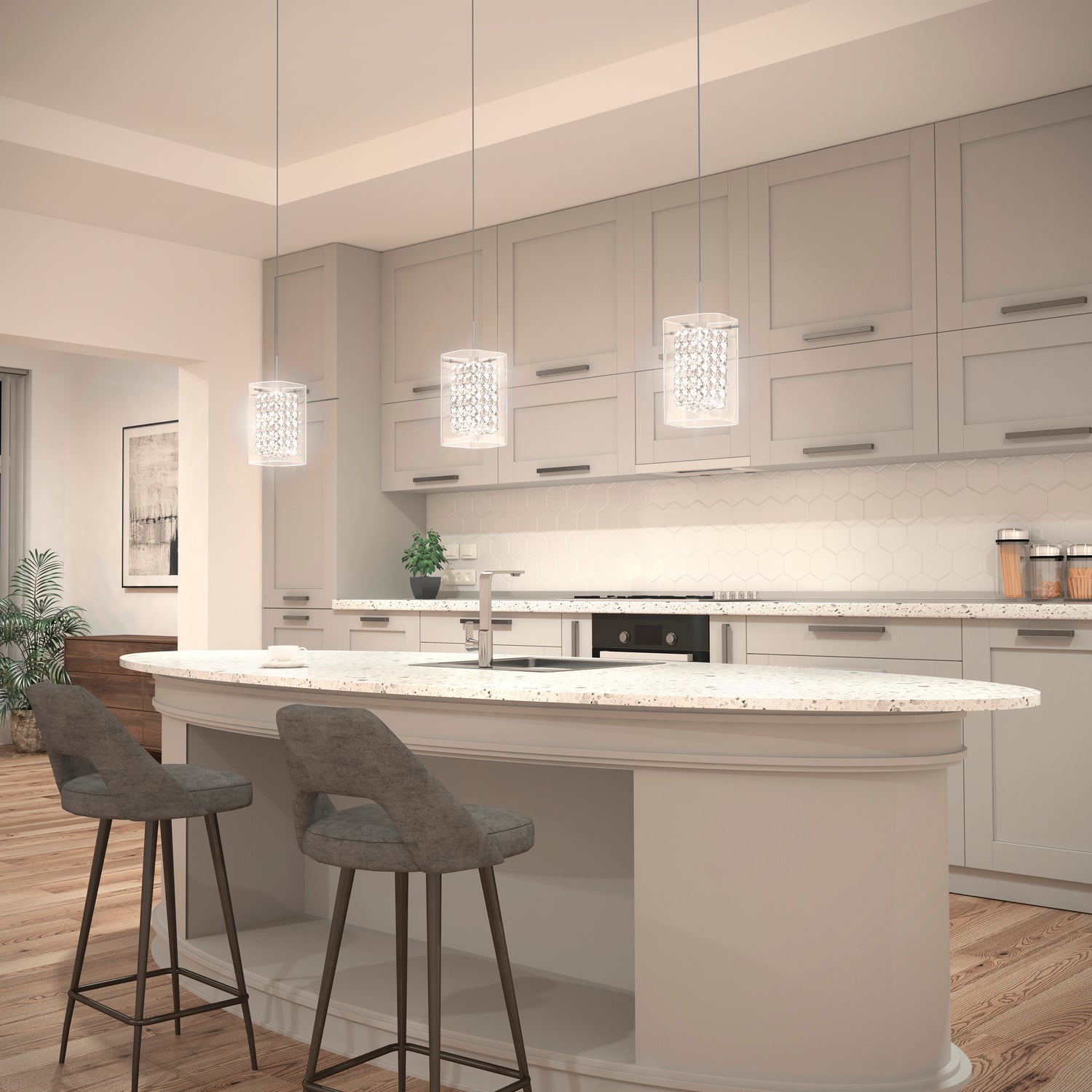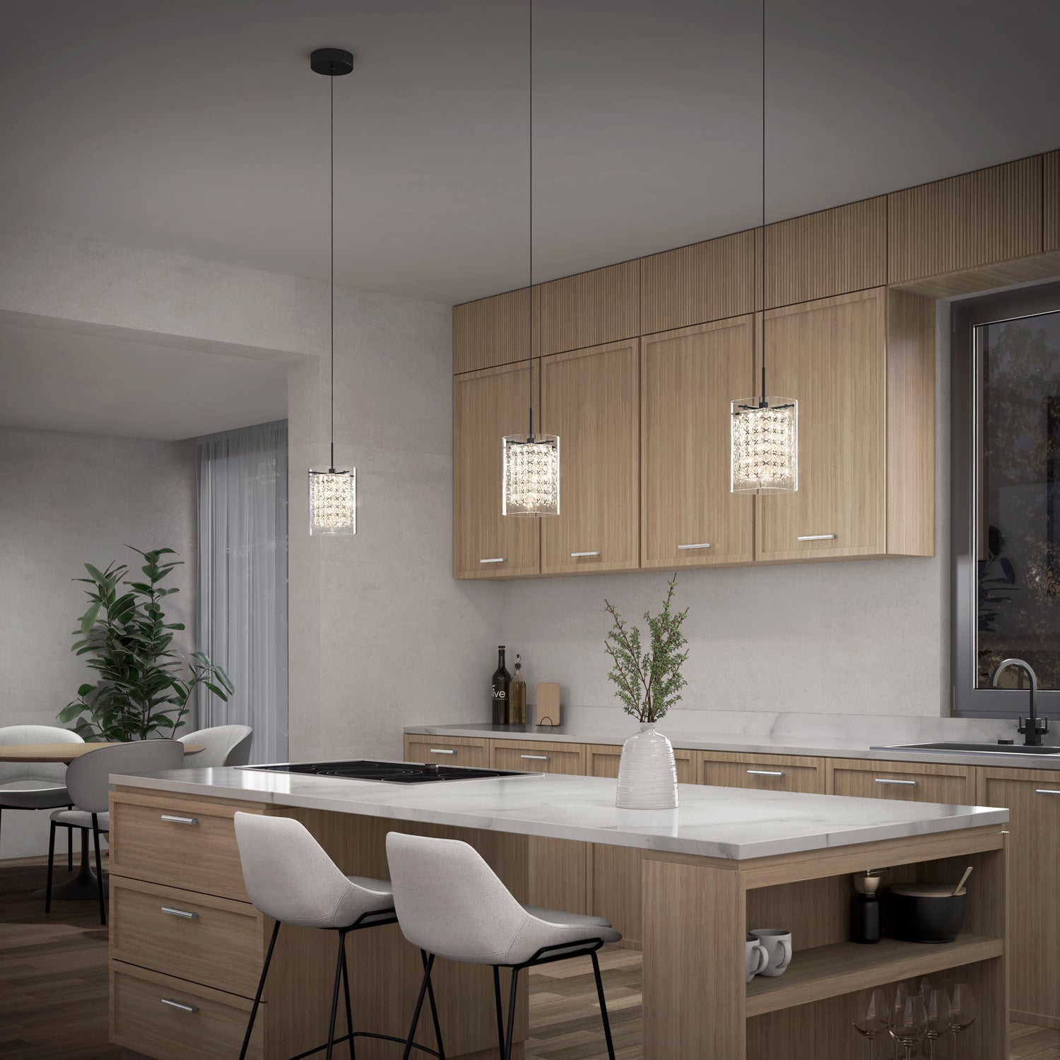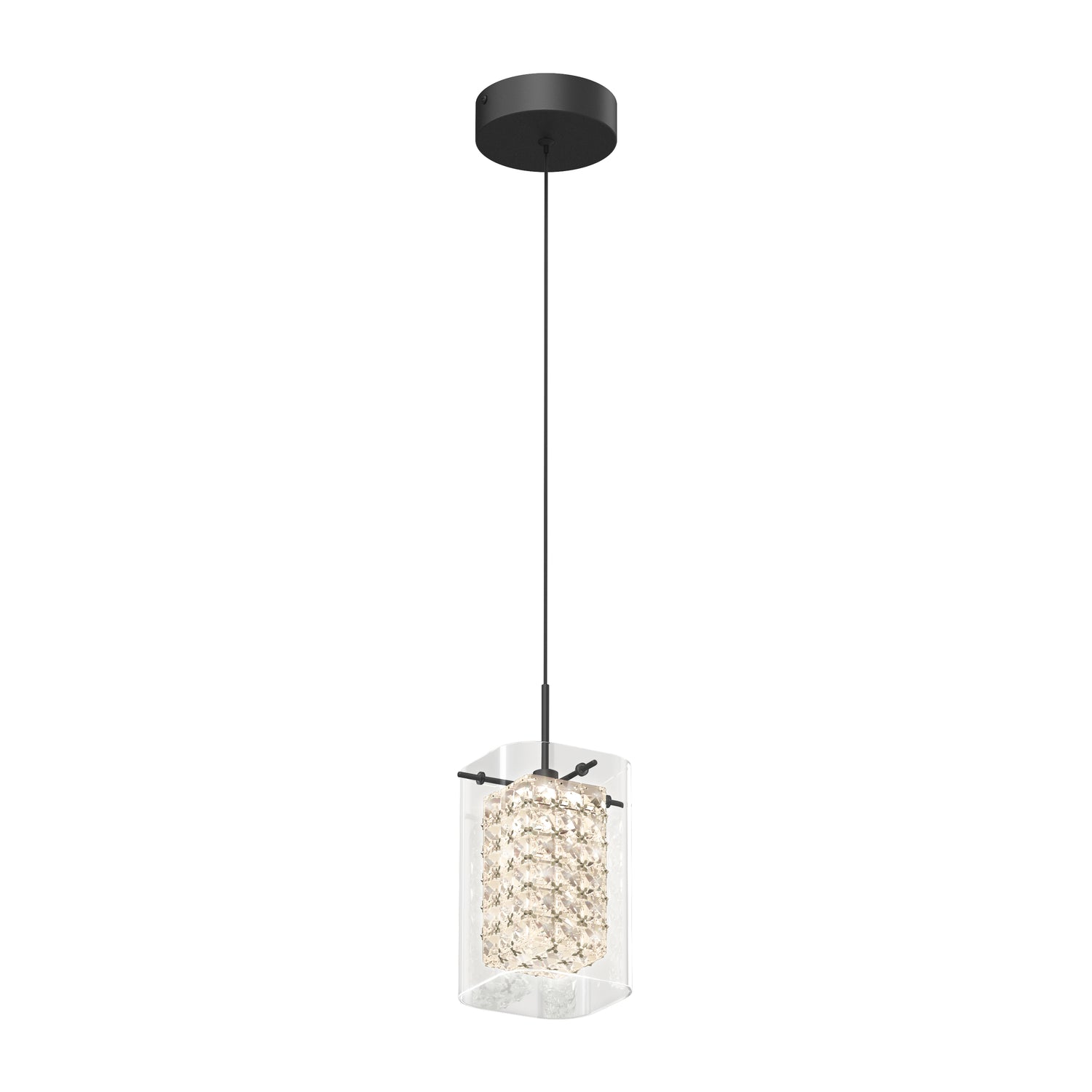 Blending modern design with luxurious detail, Crystal Cube 1 is an LED pendant defined by its shimmering glass diffuser. The style evokes the brilliance of diamonds, surrounded by a lightly smoked glass shell. Install it in a series above a kitchen island or bathroom vanity for a striking effect.