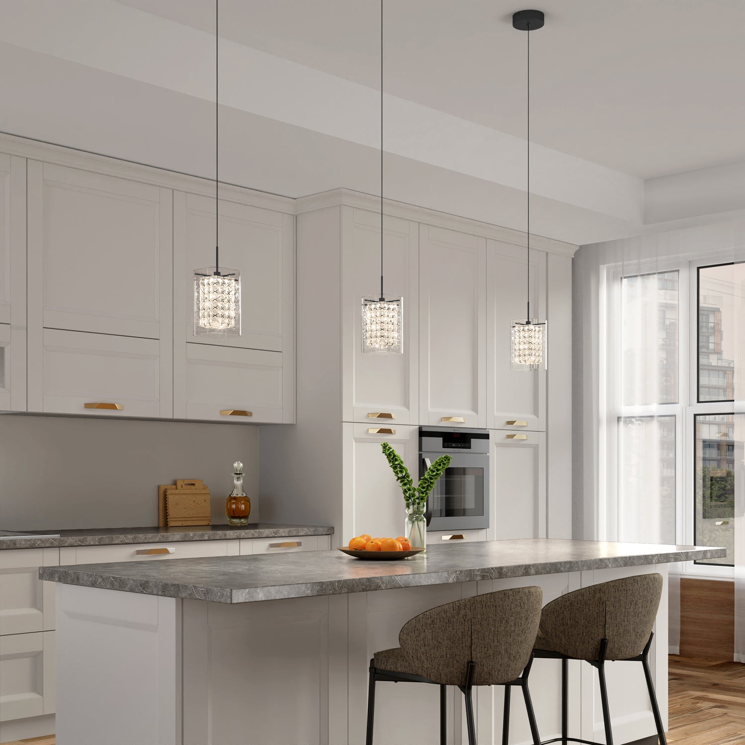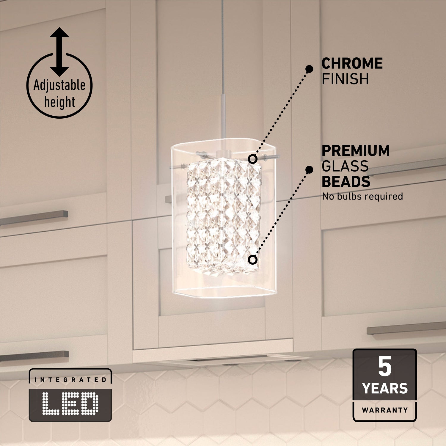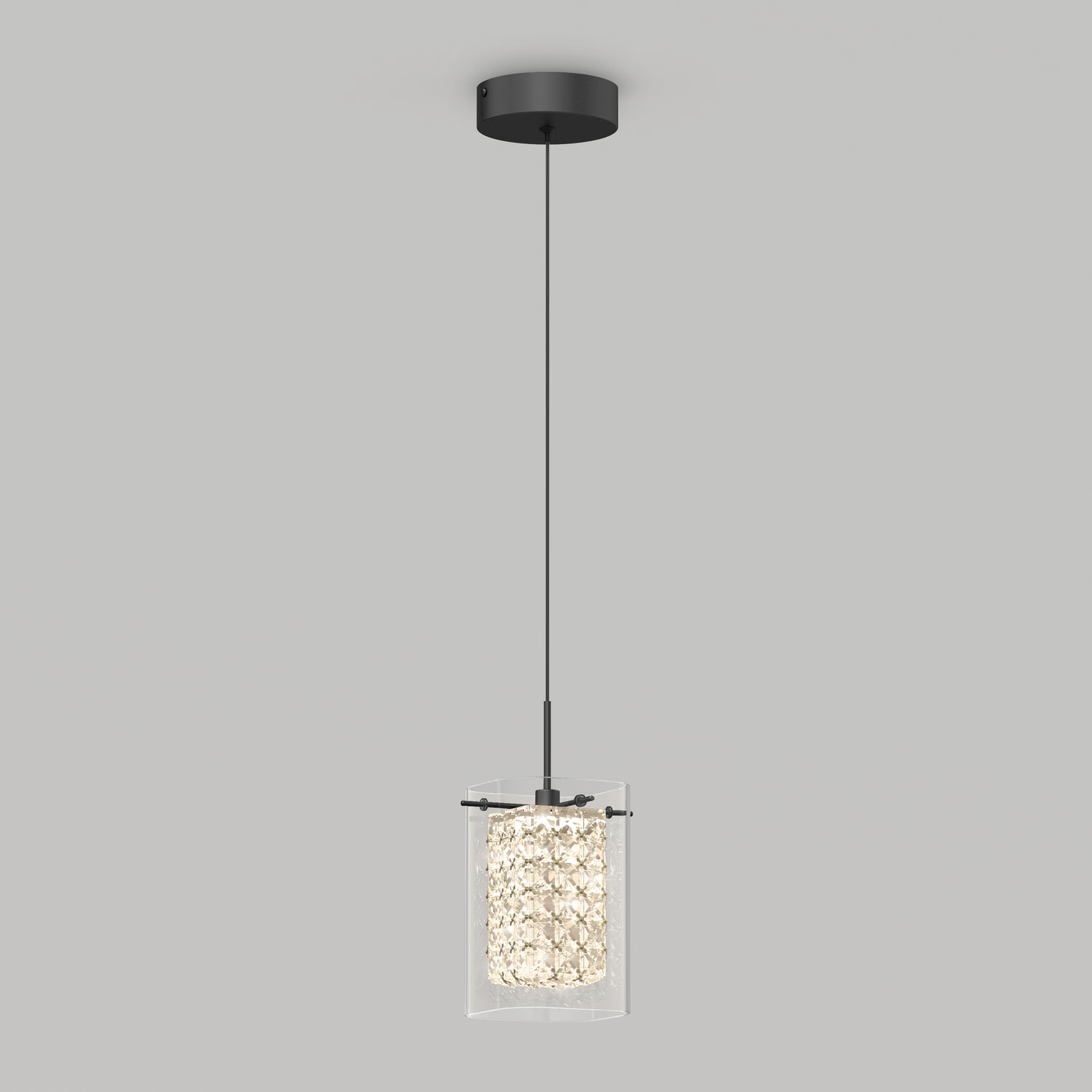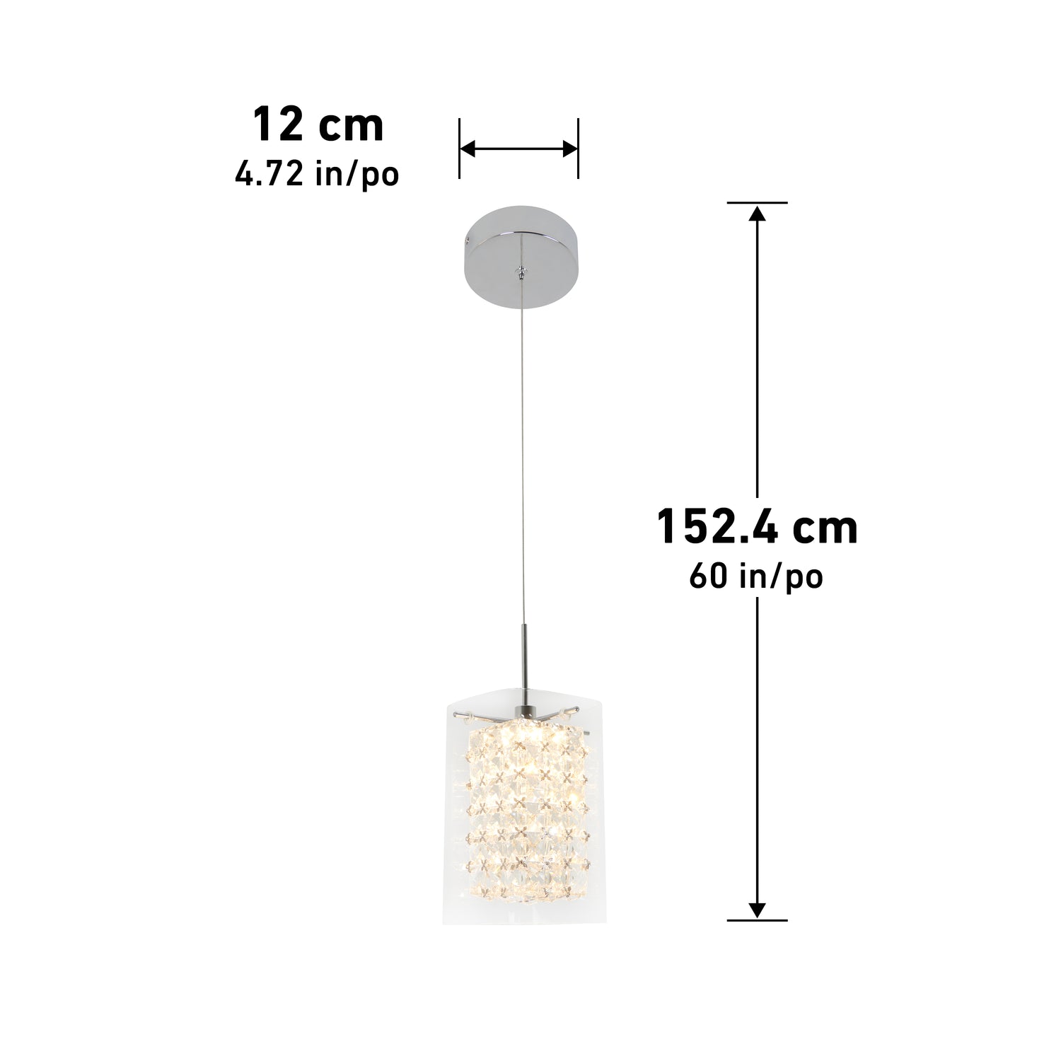 Blending modern design with luxurious detail, Crystal Cube 1 is an LED pendant defined by its shimmering glass diffuser. The style evokes the brilliance of diamonds, surrounded by a lightly smoked glass shell. Install it in a series above a kitchen island or bathroom vanity for a striking effect.