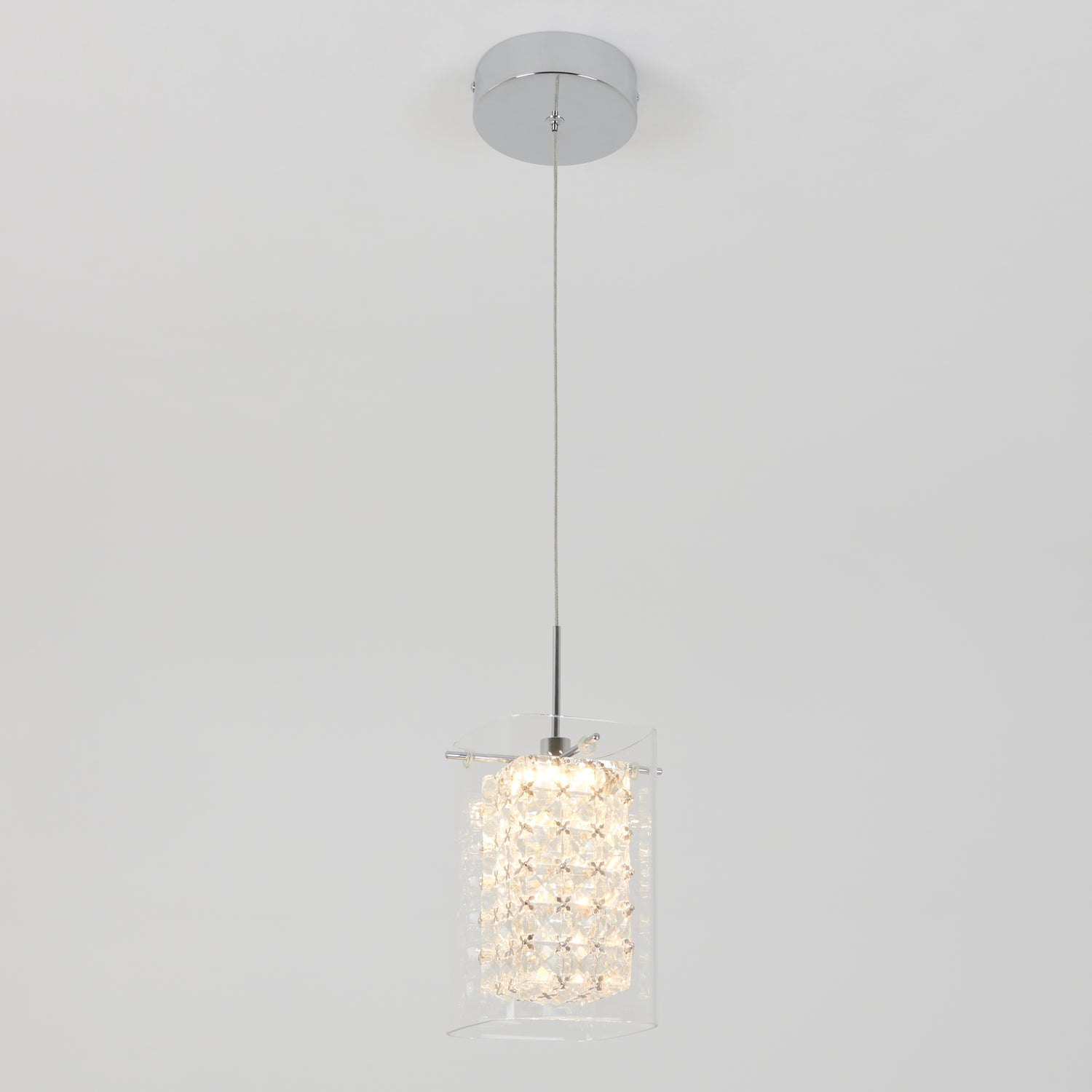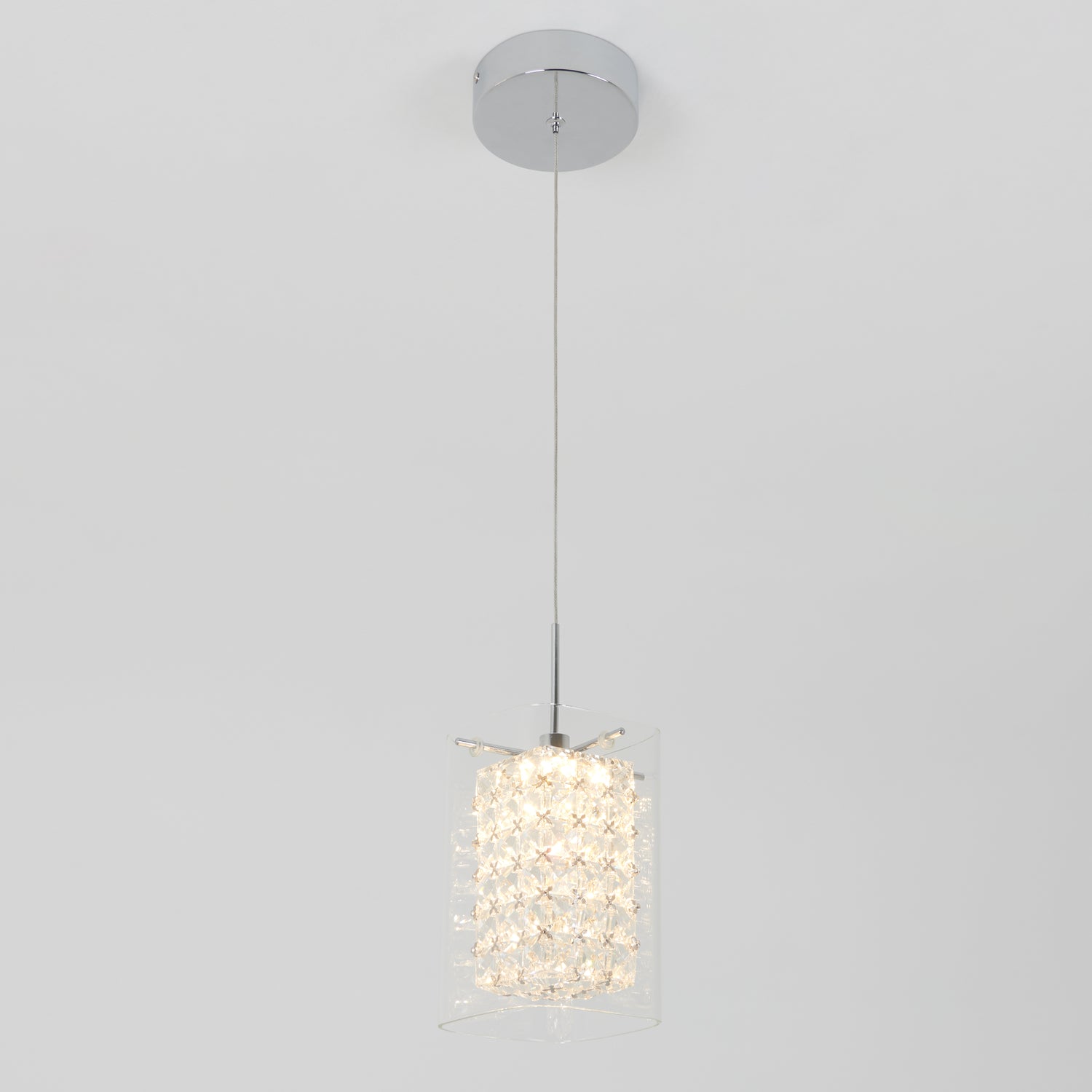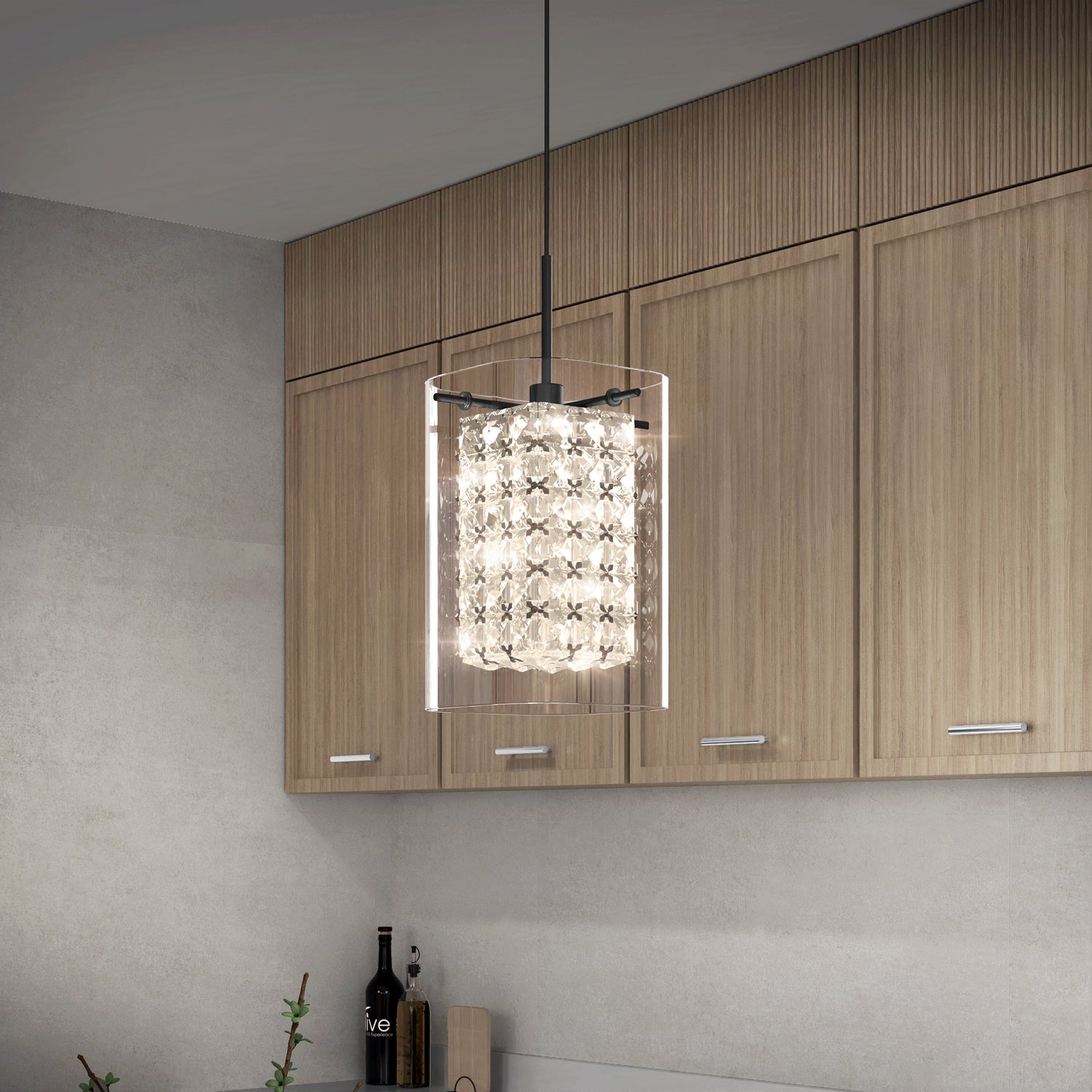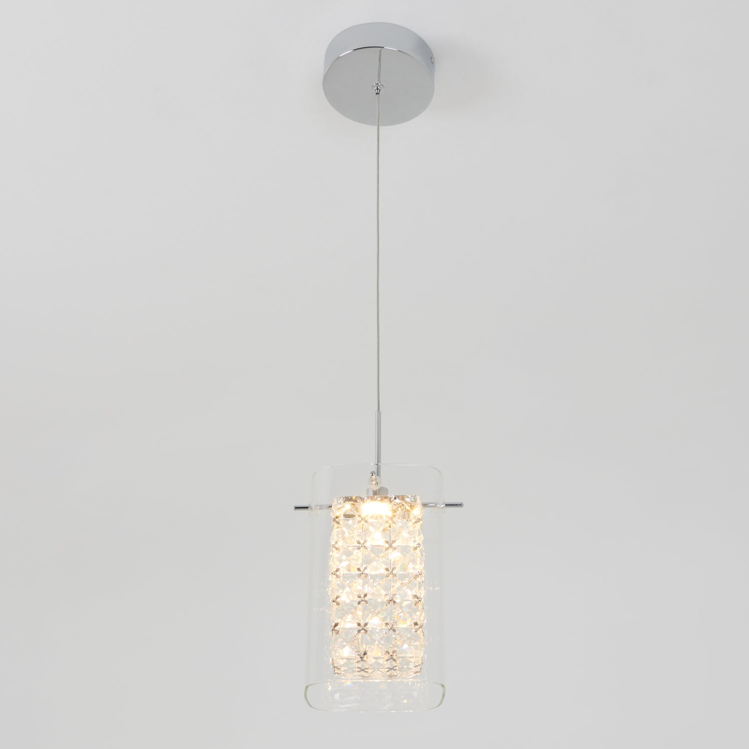 Blending modern design with luxurious detail, Crystal Cube 1 is an LED pendant defined by its shimmering glass diffuser. The style evokes the brilliance of diamonds, surrounded by a lightly smoked glass shell. Install it in a series above a kitchen island or bathroom vanity for a striking effect.
