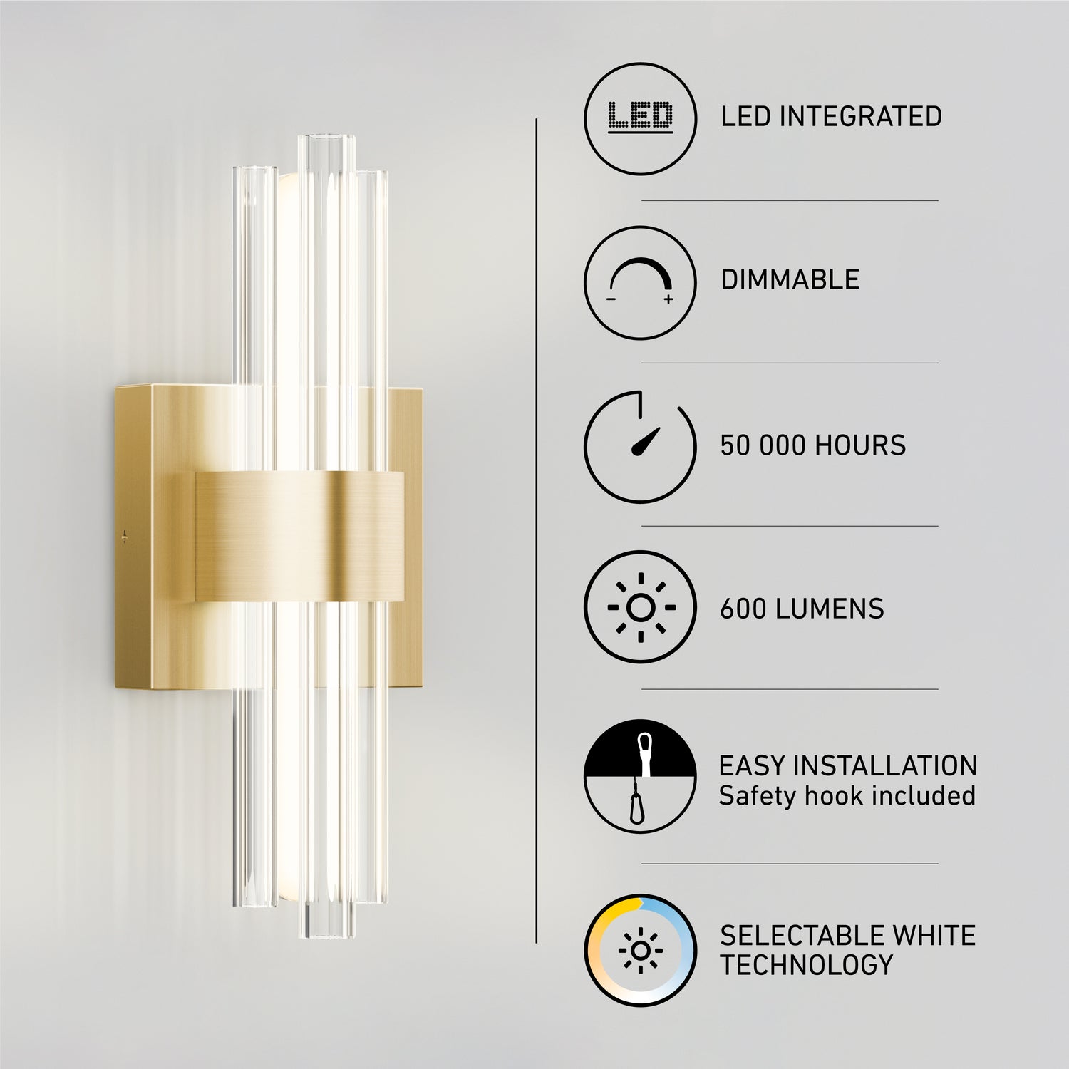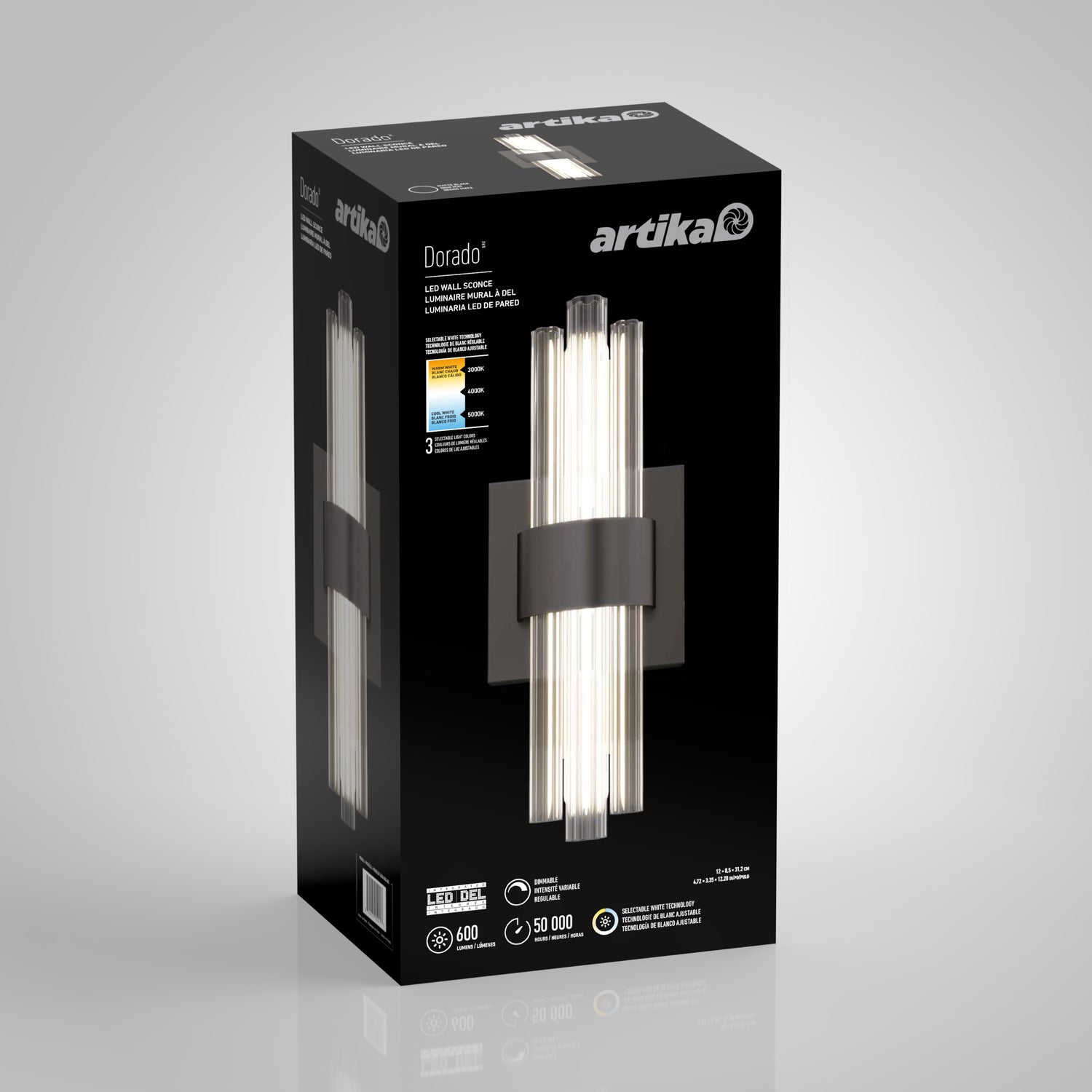 Delivering 650 lumens, it offers ambient lighting with adjustable brightness when paired with a compatible LED dimmer. Choose from three white tones—warm, neutral, or cool. Lifespan: 50,000 hours.