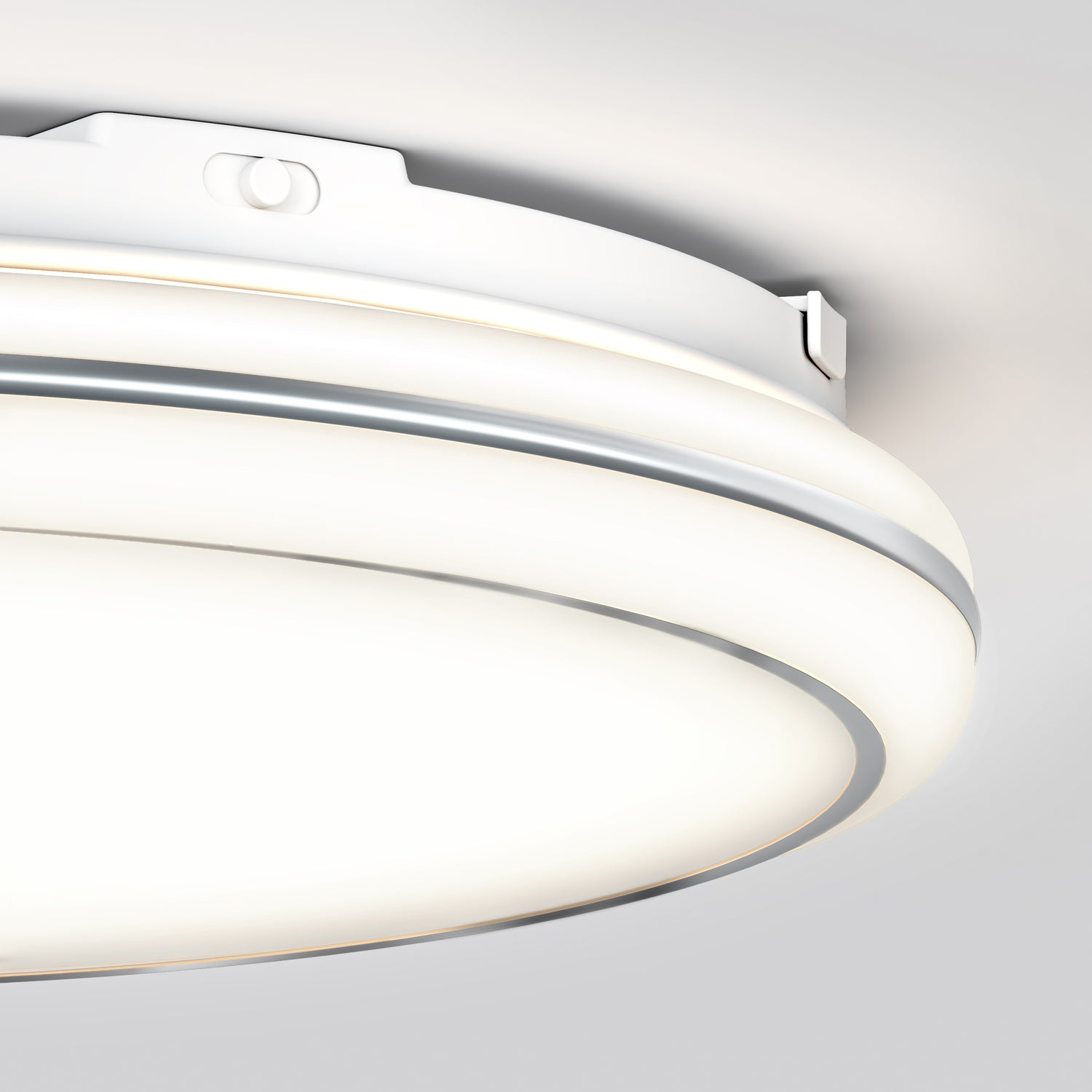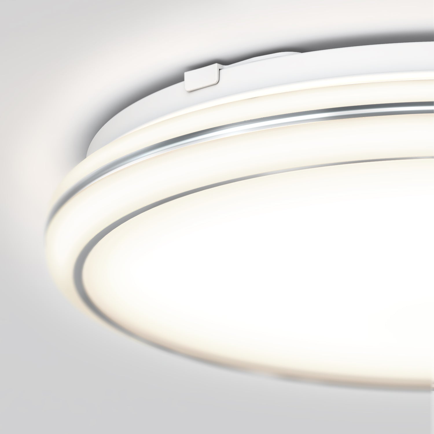 With a brightness of 1,800 lumens, it’s well-suited for medium-sized rooms. The light can be dimmed using an LED-compatible dimmer, and you can easily select from three white tones to suit your space. Lifespan: 50,000 hours.