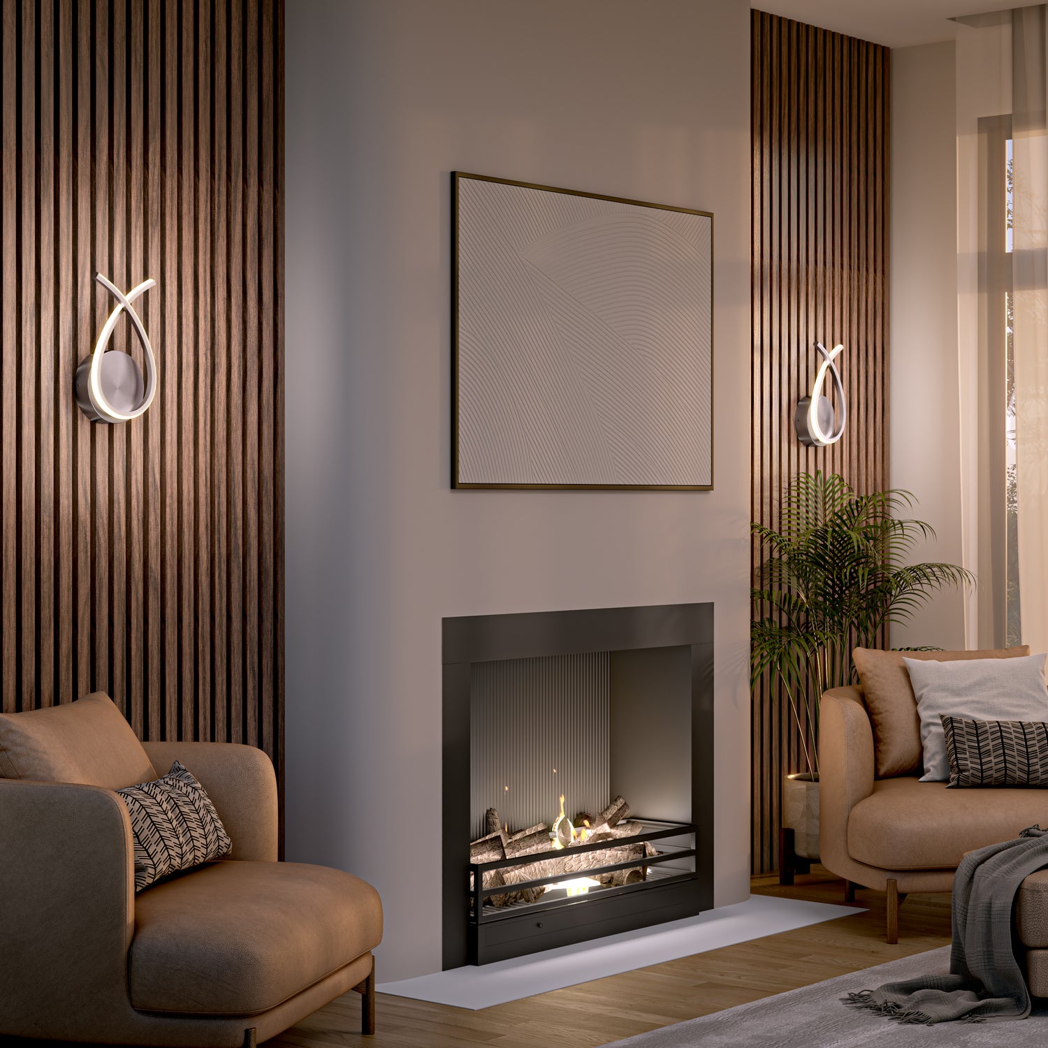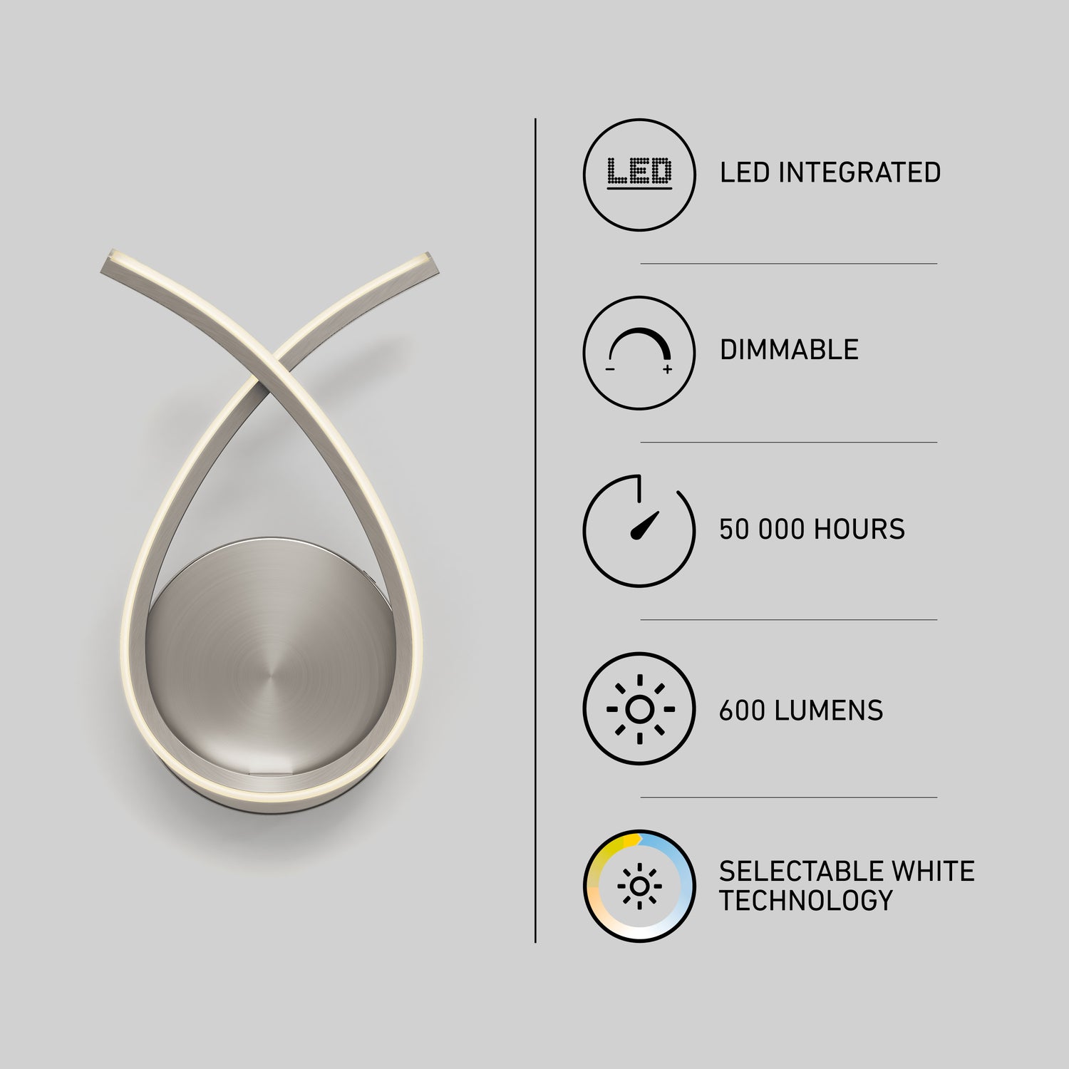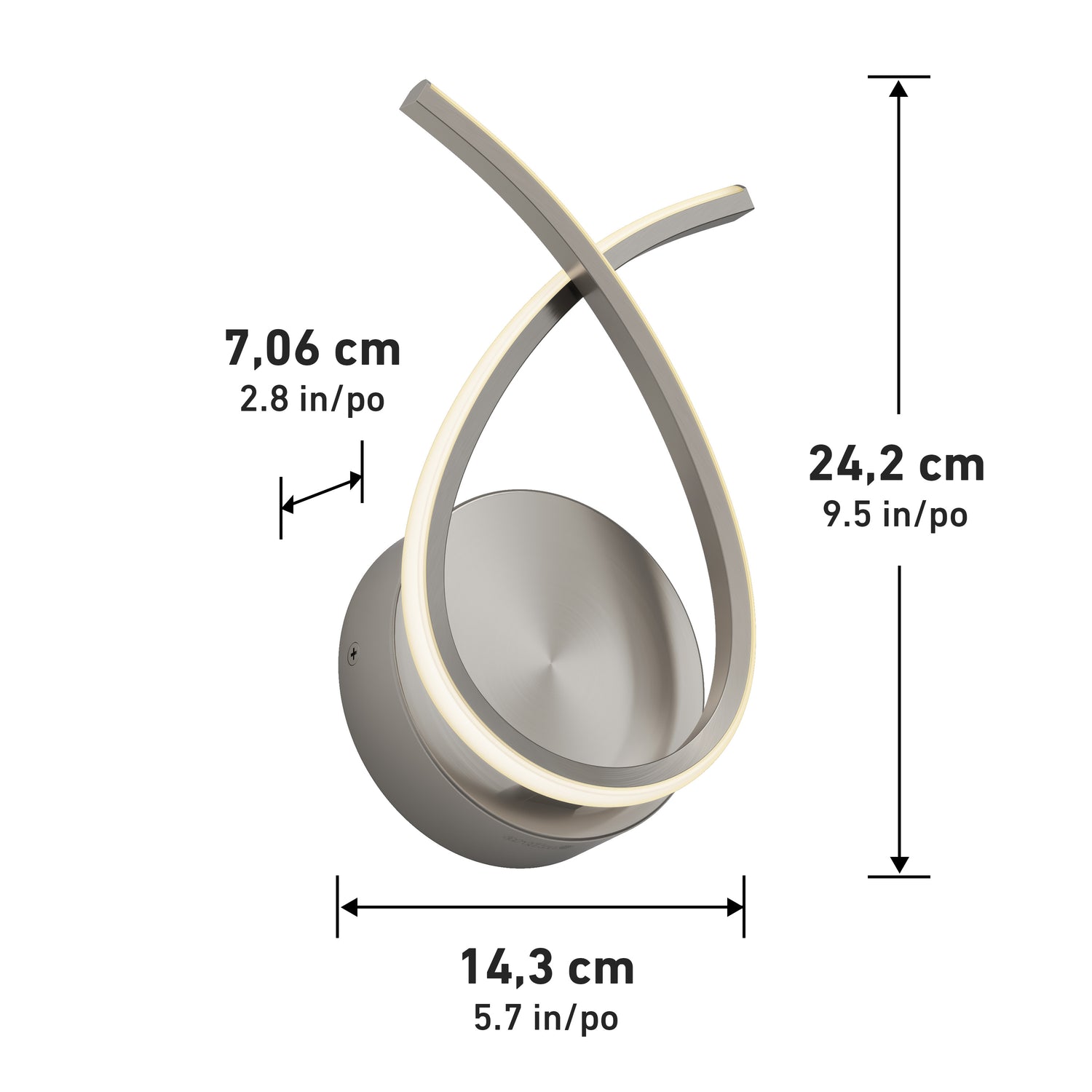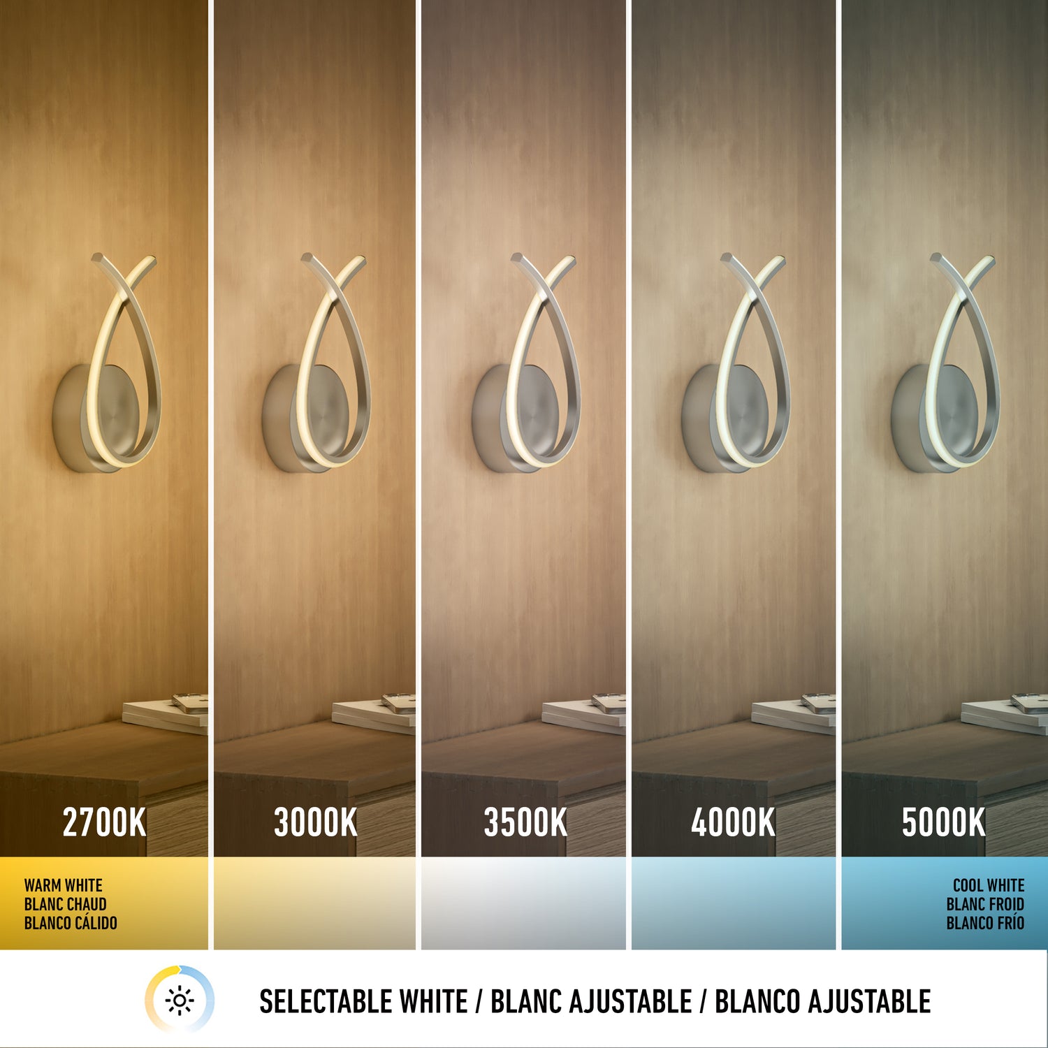 Ideal for columns, accent walls, artwork, or hallways, the Gamma LED wall light adds a refined touch to any space. Its interwoven band of light casts a unique glow that changes depending on the viewing angle. With 550 lumens, it offers soft accent lighting that can be adjusted with a compatible LED dimmer. Choose from five shades of white to find the perfect tone. Lifespan: 50,000 hours.