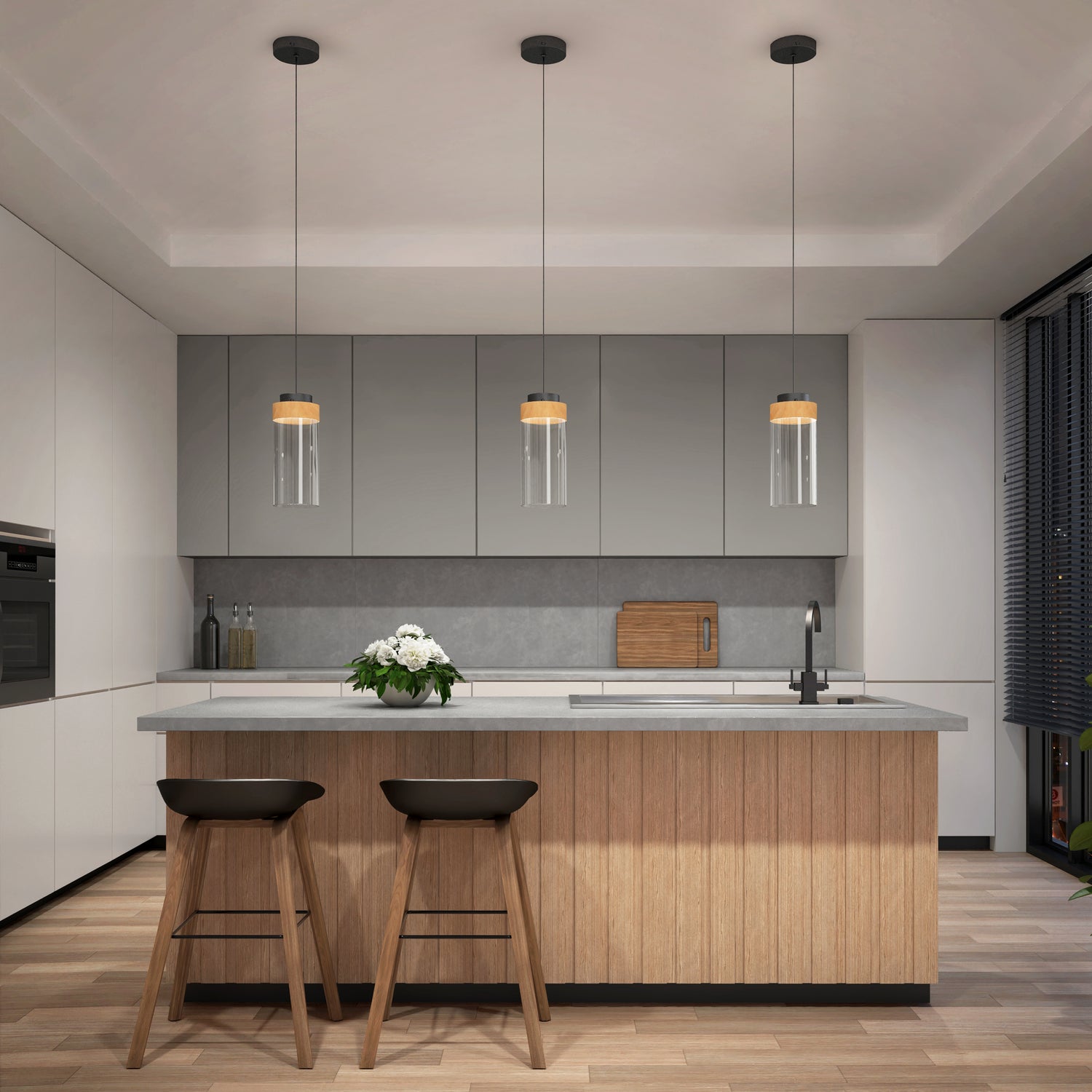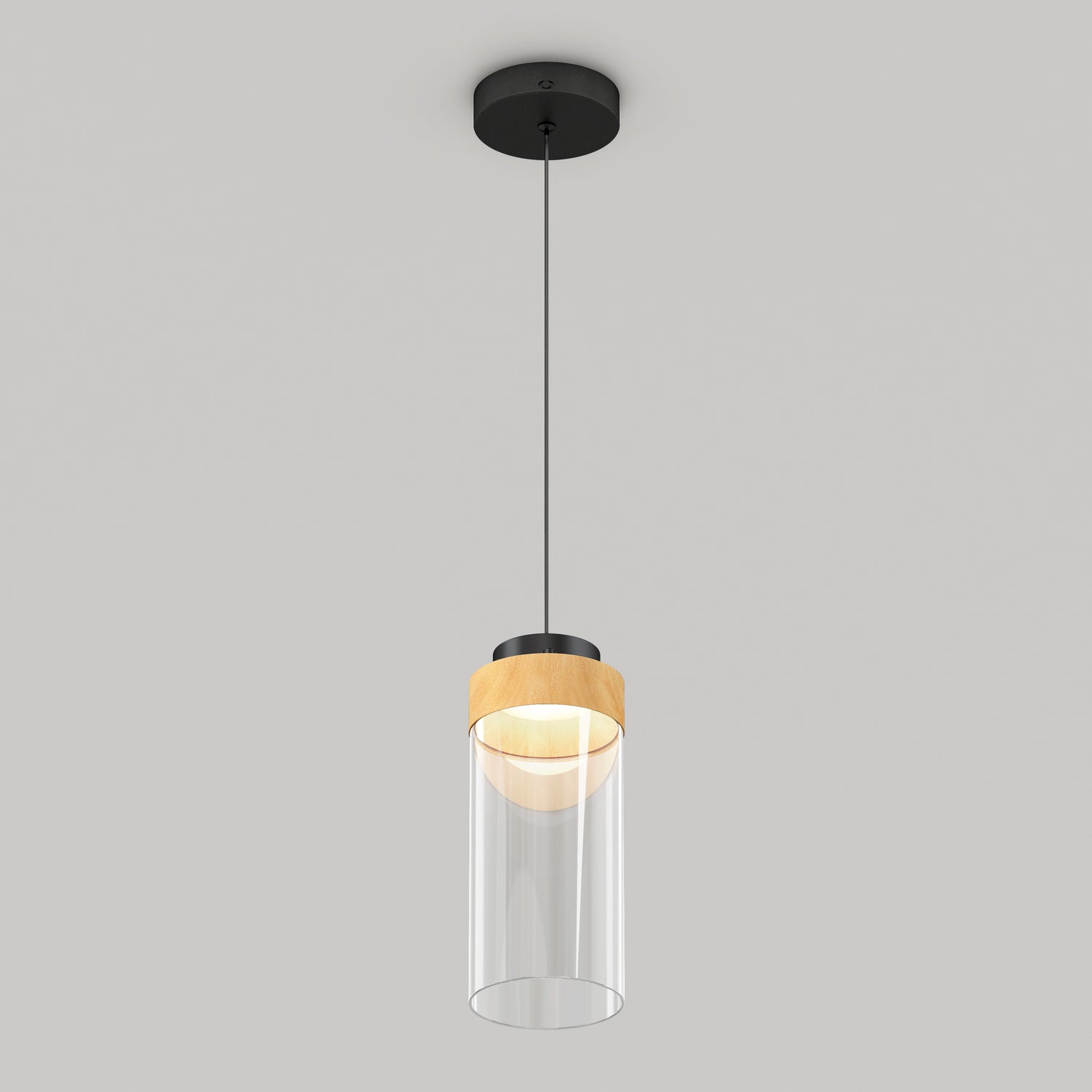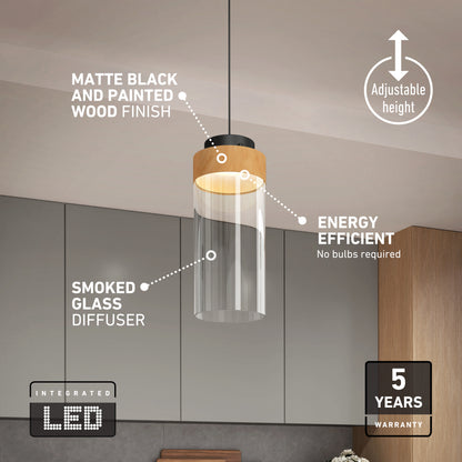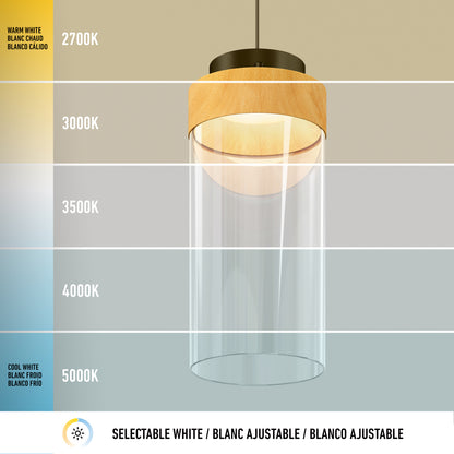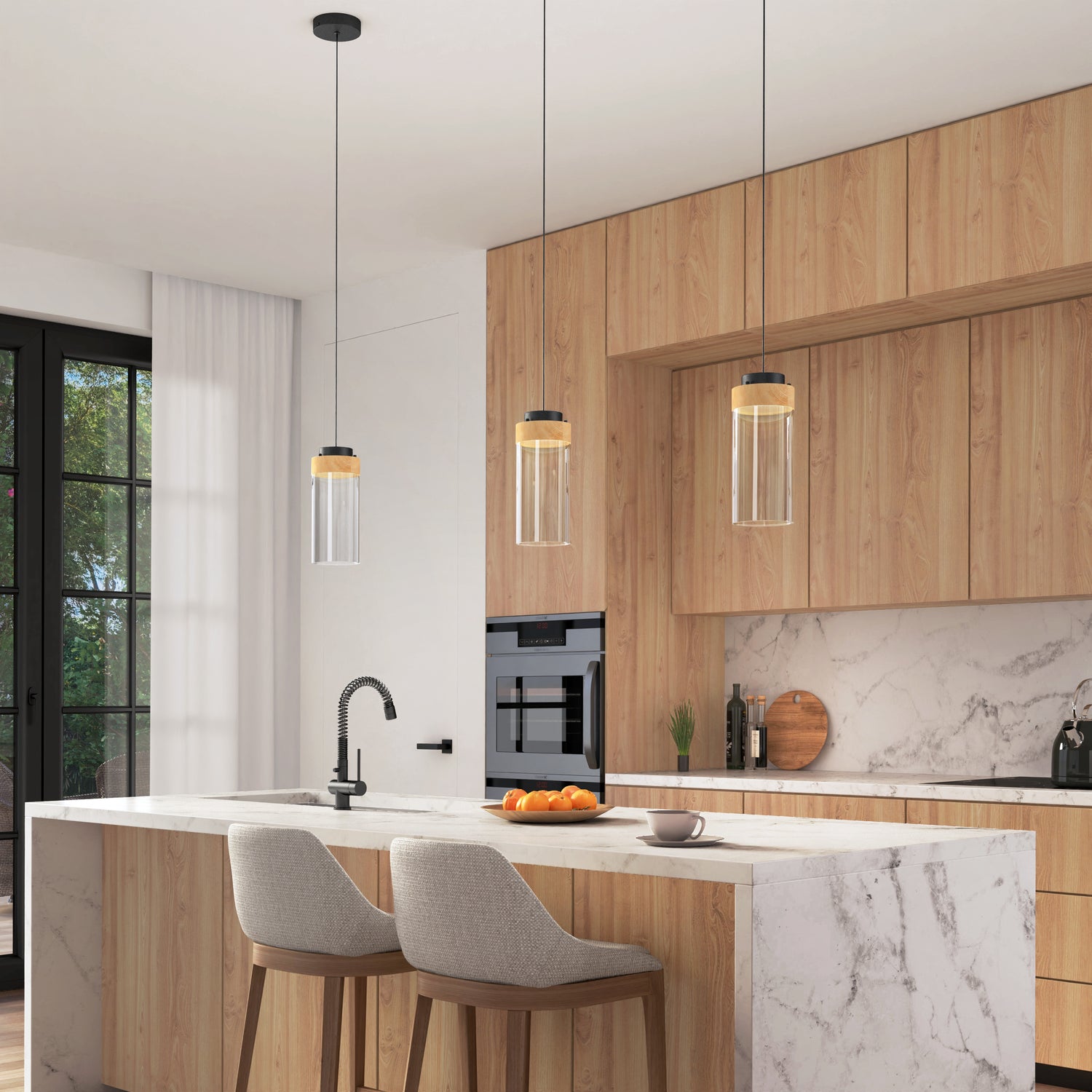 This pendant pairs a warm wood finish with a clear glass shade for a refined, modern look. Ideal above a counter or kitchen island, it delivers bright, focused light that enhances your workspace with style and function.