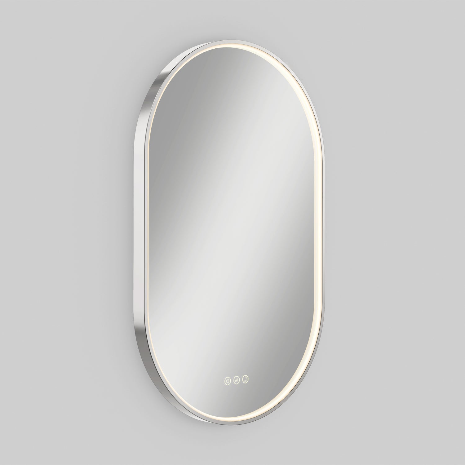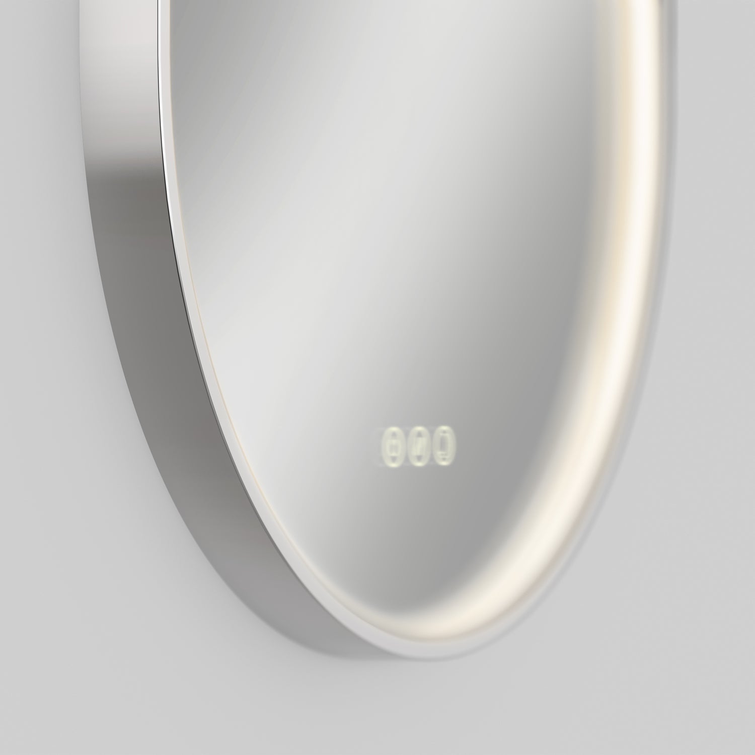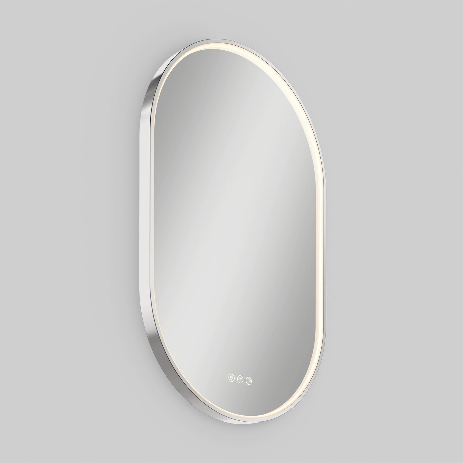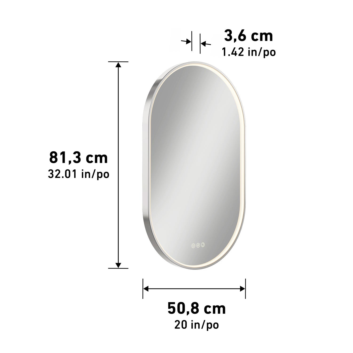 With its oval design, this LED mirror blends seamlessly into modern and romantic interiors. The light emanates from within the frame to highlight facial features and simplify grooming.