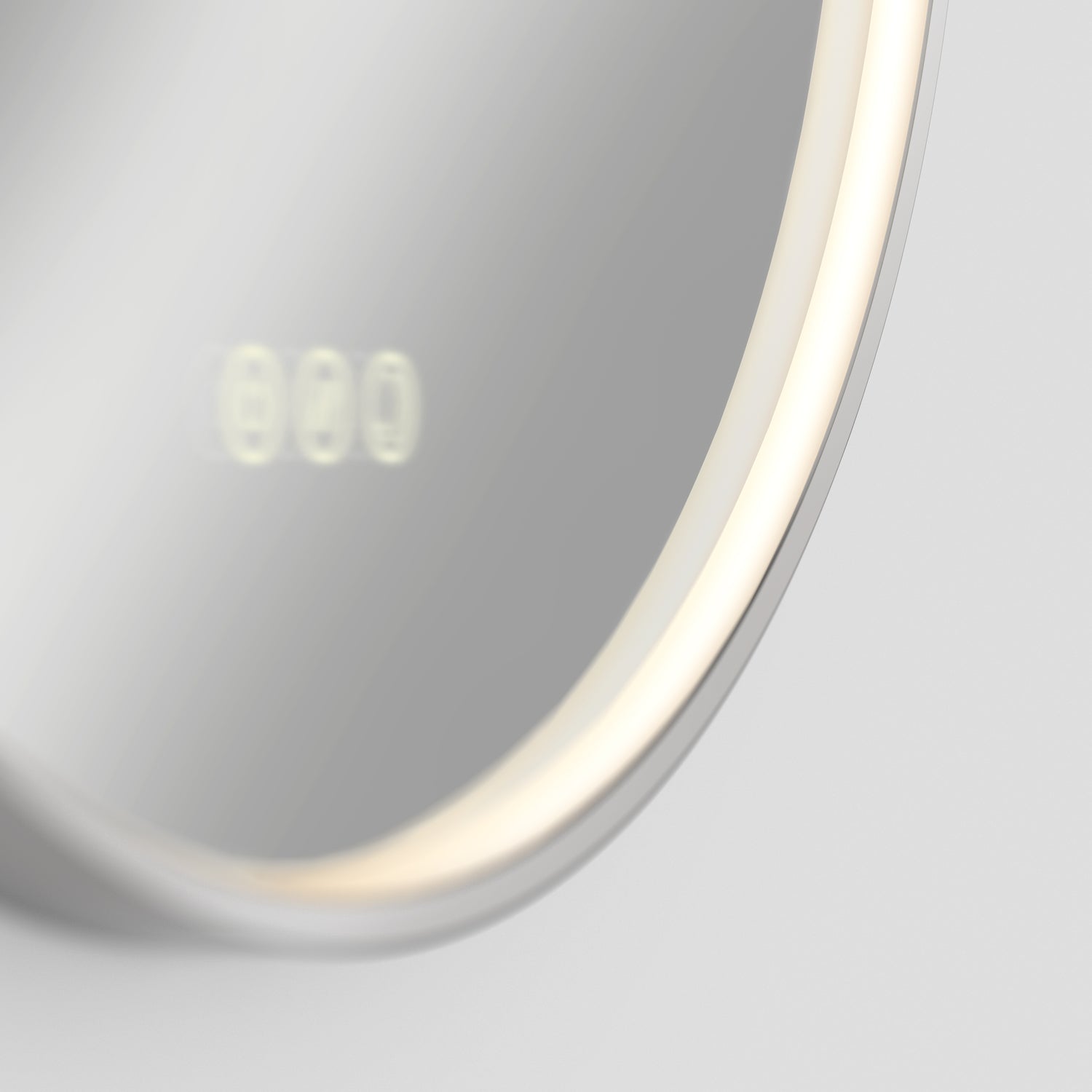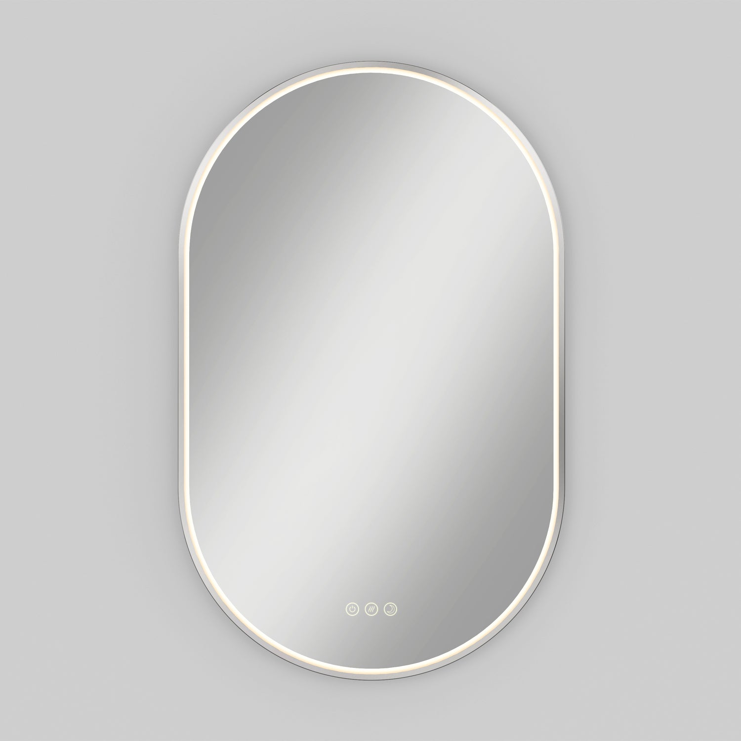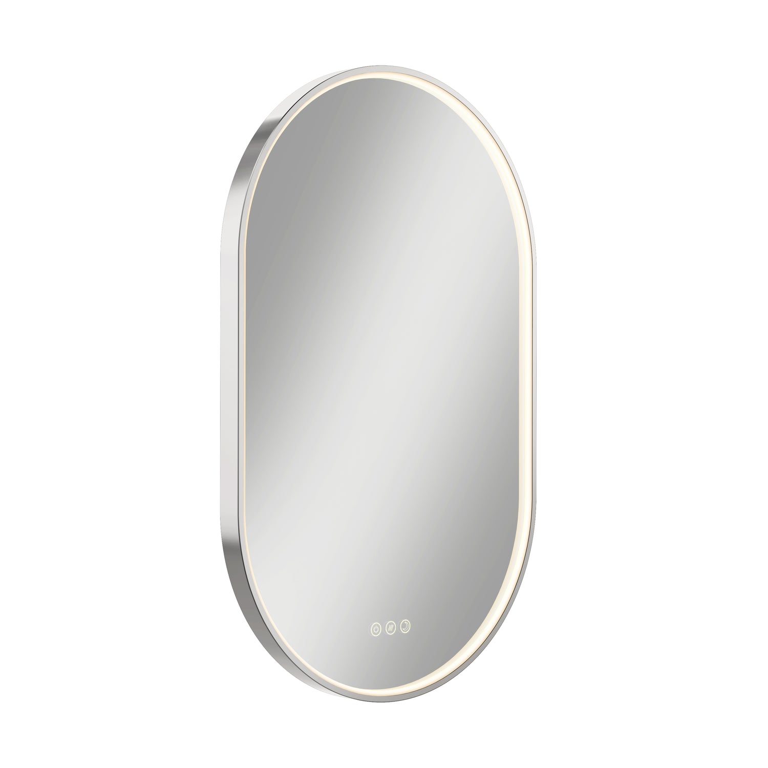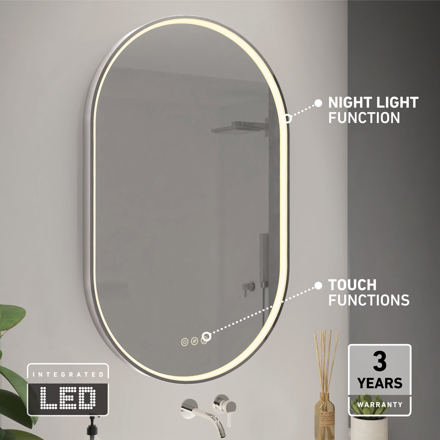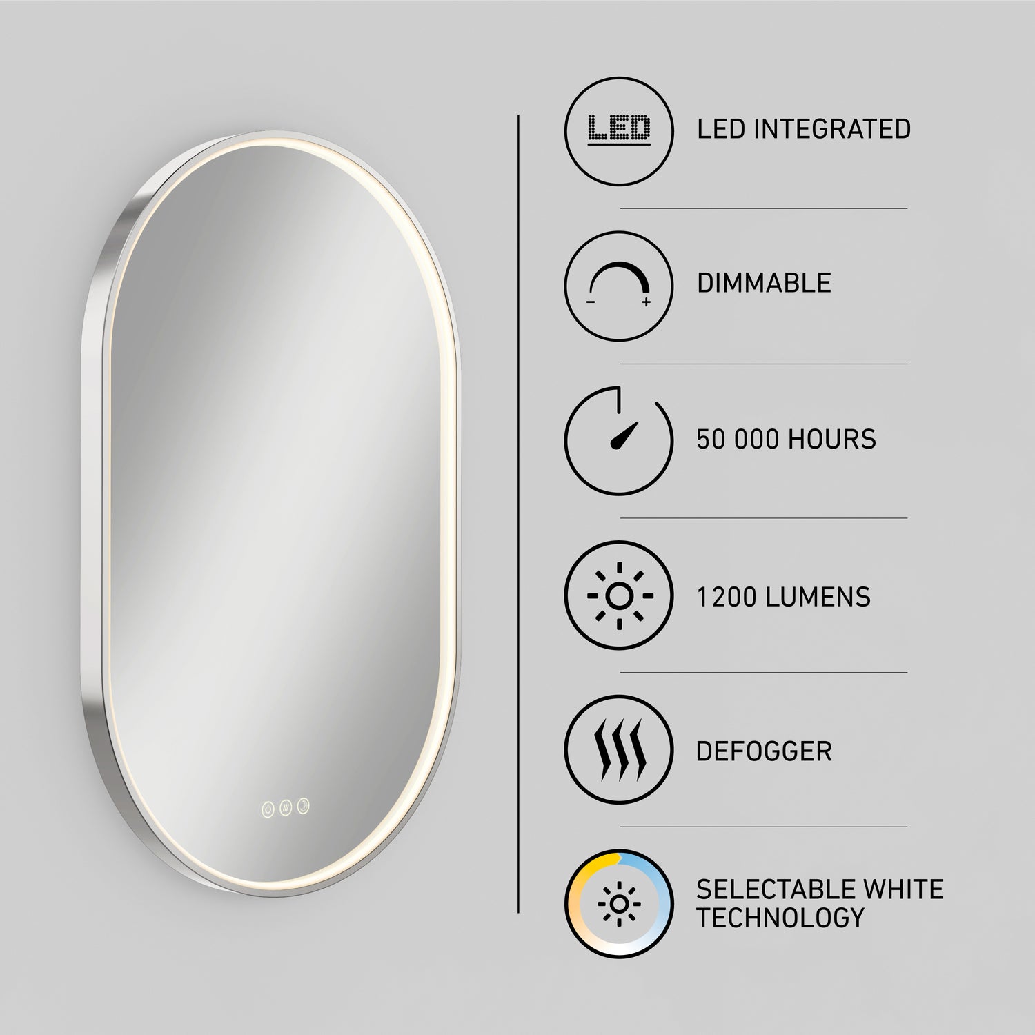 With its oval design, this LED mirror blends seamlessly into modern and romantic interiors. The light emanates from within the frame to highlight facial features and simplify grooming.