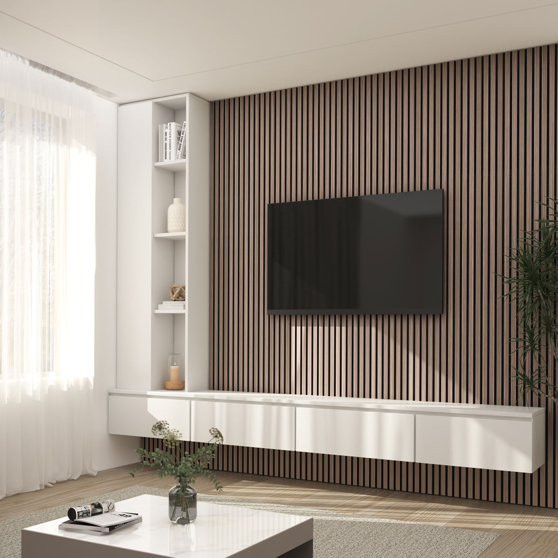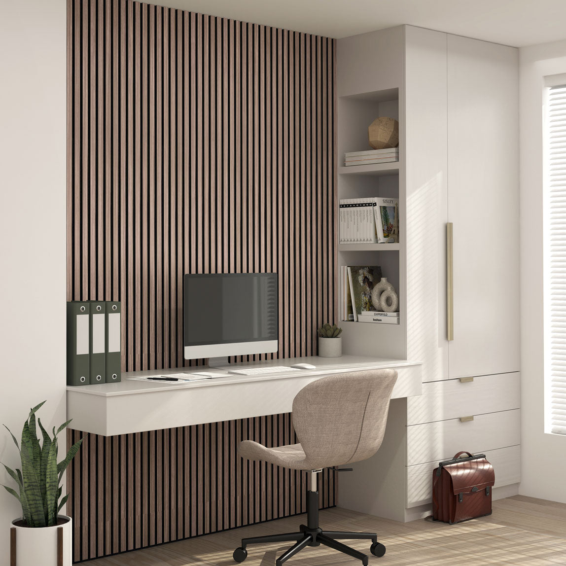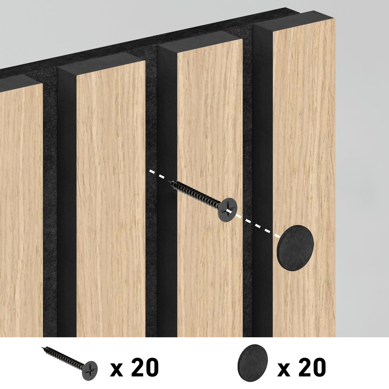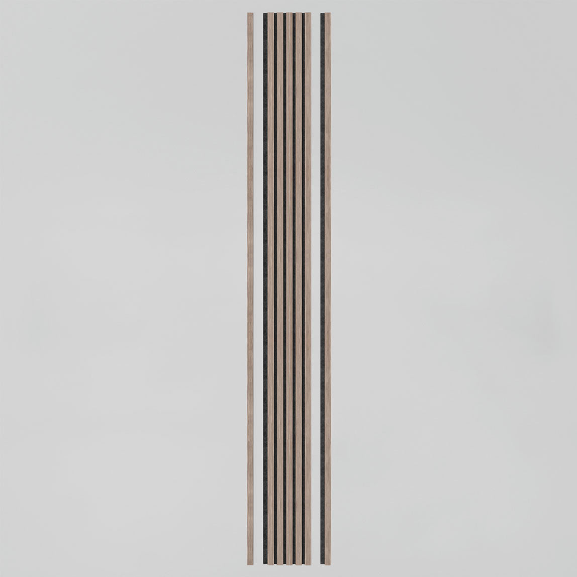 This slat panel set combines acoustic function with decorative appeal. Use it to define a home office or play area, frame your media setup, or create a statement headboard—while reducing echo and adding a refined wood finish to your space.