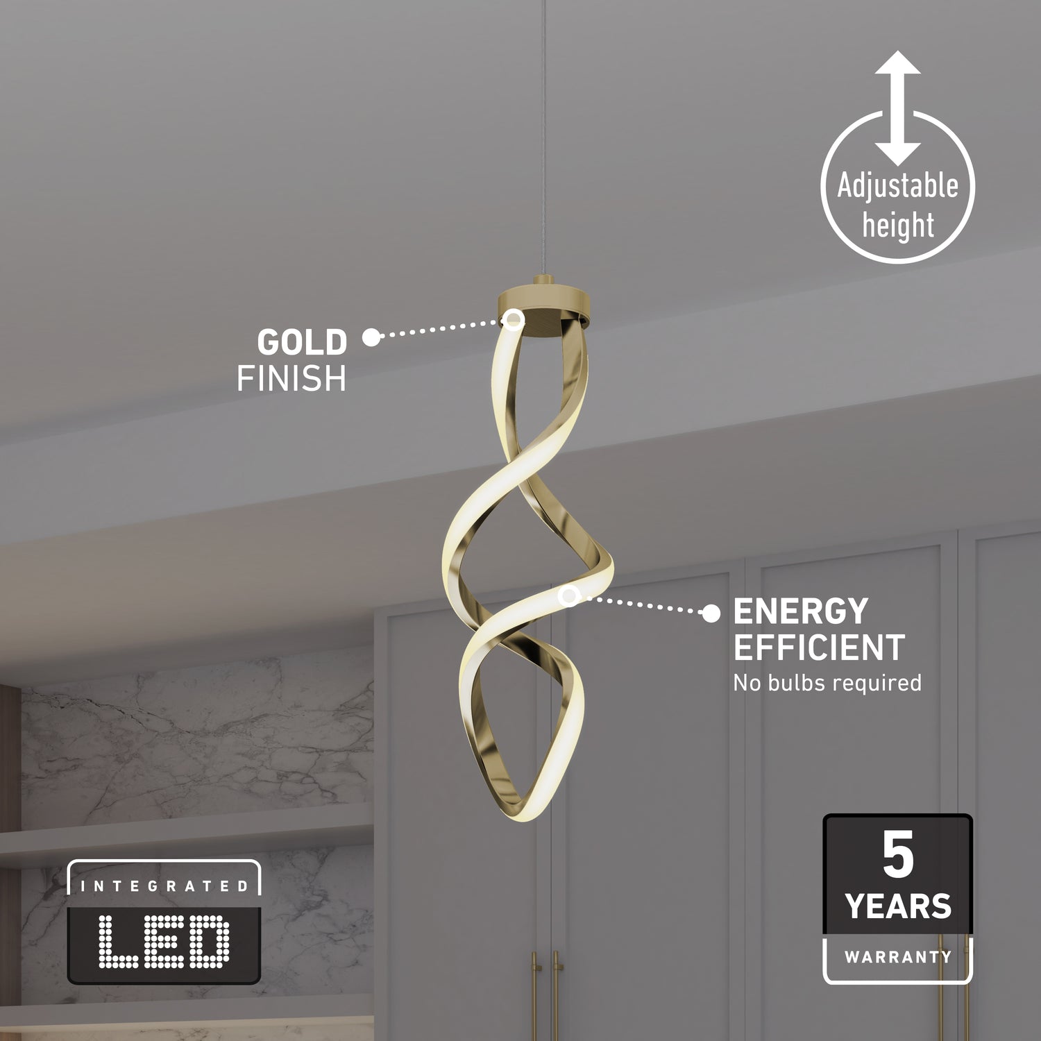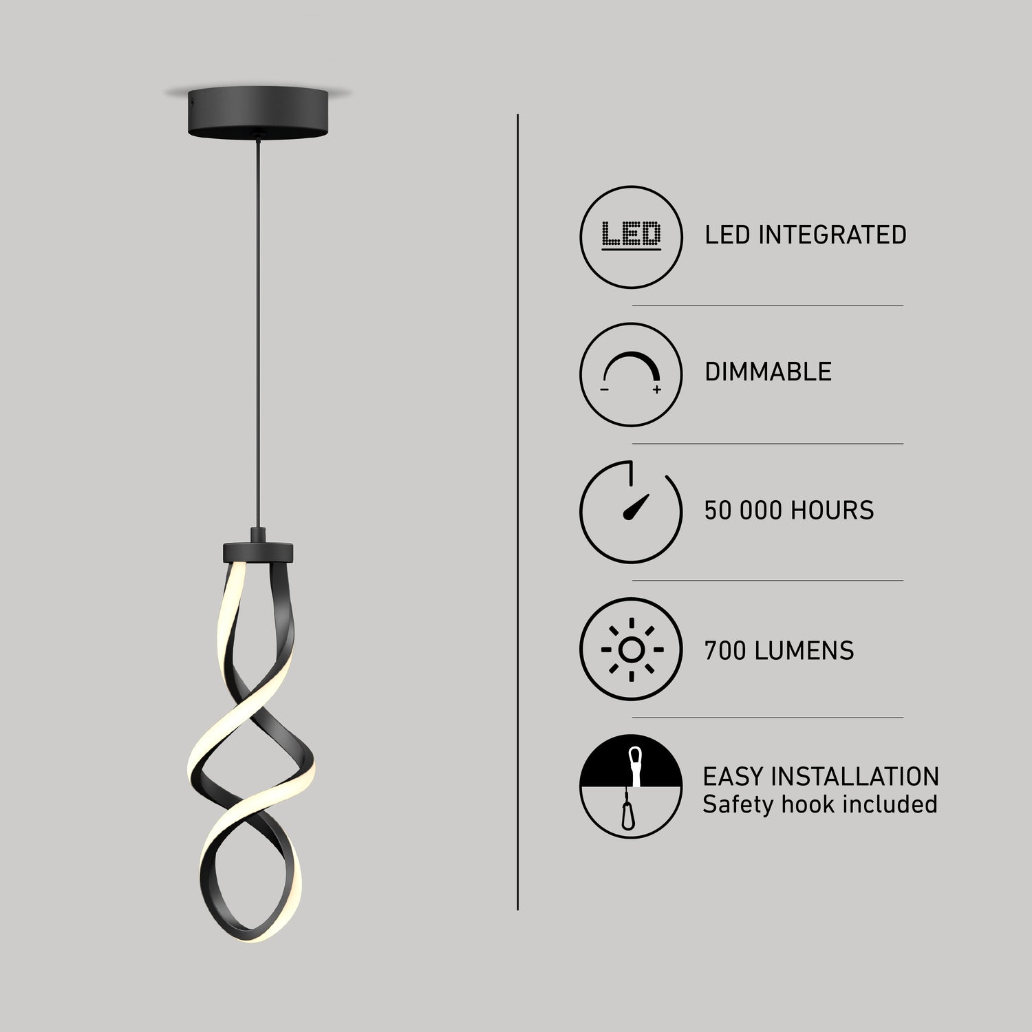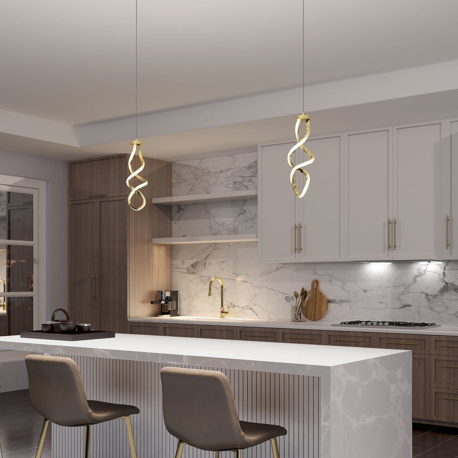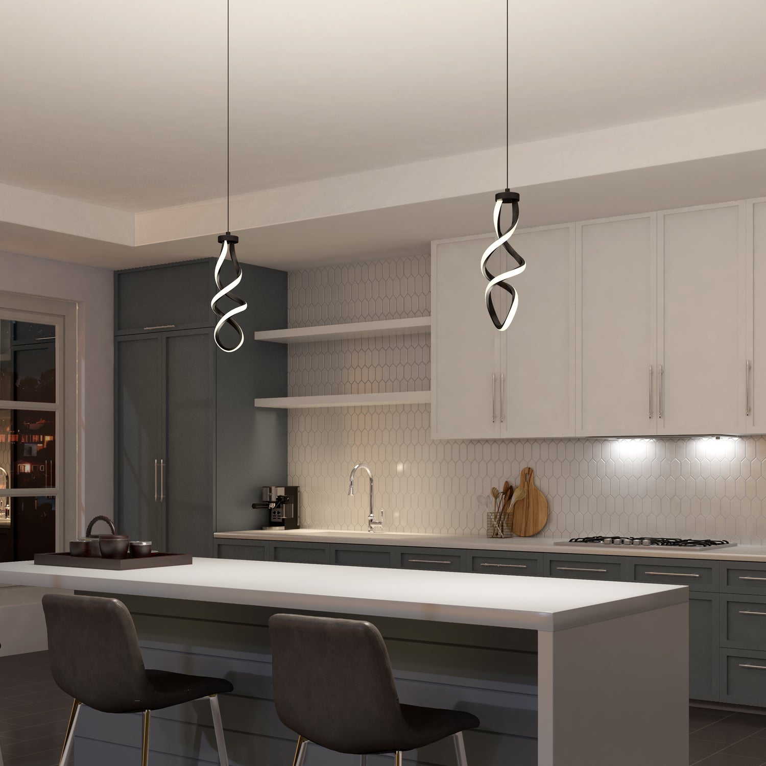 With its spiral shape, this LED pendant illuminates from all directions, providing supplementary lighting that’s both chic and warm. The fixture looks particularly great when installed over a kitchen island in series of two or more, as its black finish meshes perfectly with appliances and other elements in the room.